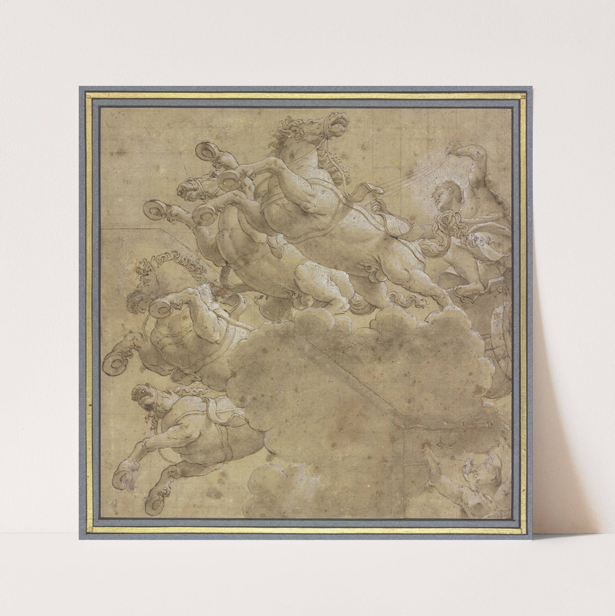 Apollo mit Rossegespann, gefolgt von Luna, in starker Unteransicht by Francesco Primaticcio - Wall Art Print