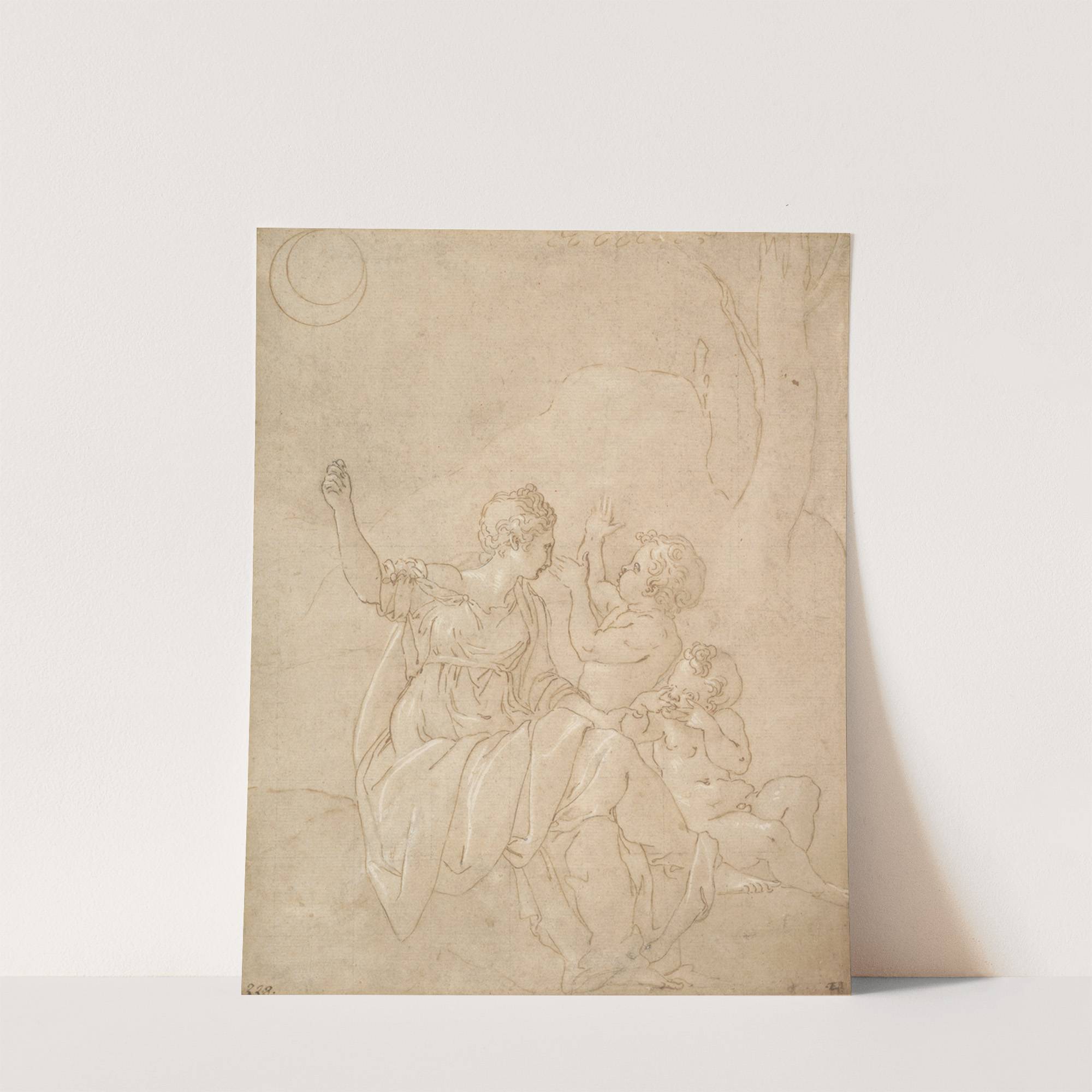 Classical Female Figure (Diana or Venus) with Two Infants by Francesco Primaticcio - Wall Art Print