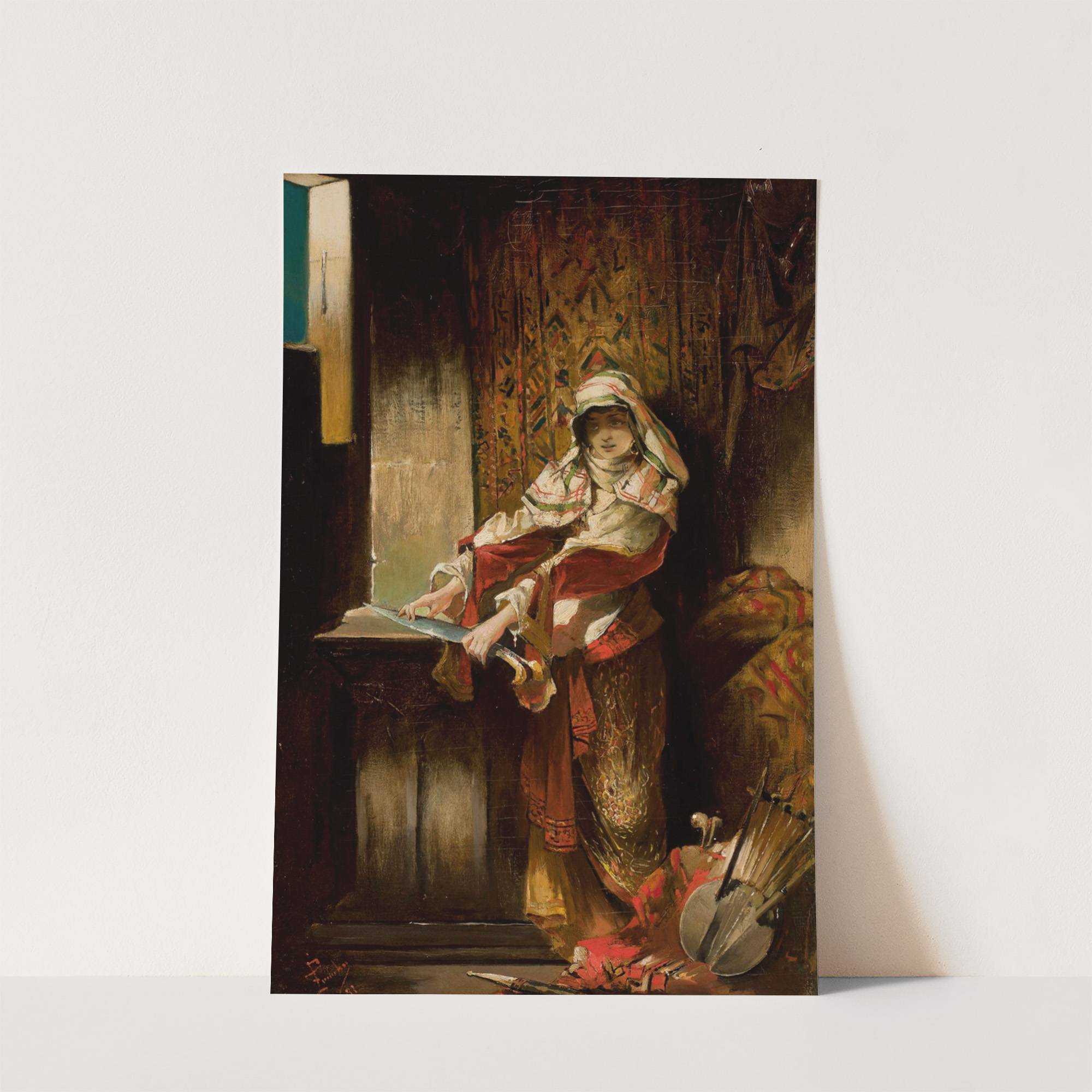 Mauritanian woman sharpening a yatagan by Franciszek Żmurko - Wall Art Print