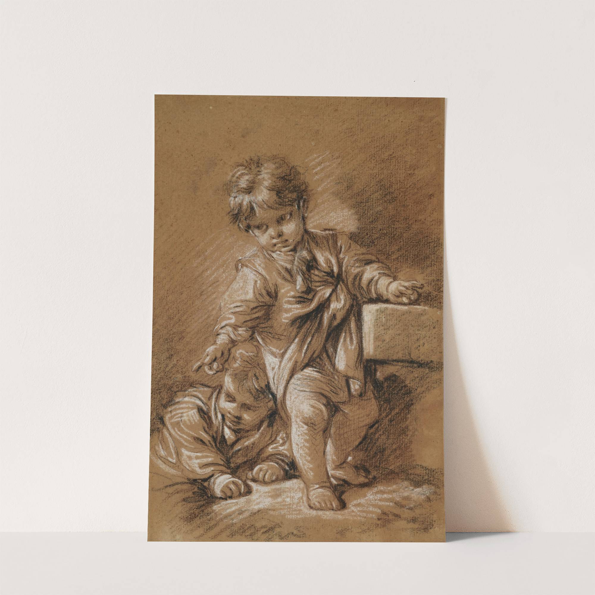 A standing boy, with a reclining boy behind him by François Boucher - Wall Art Print