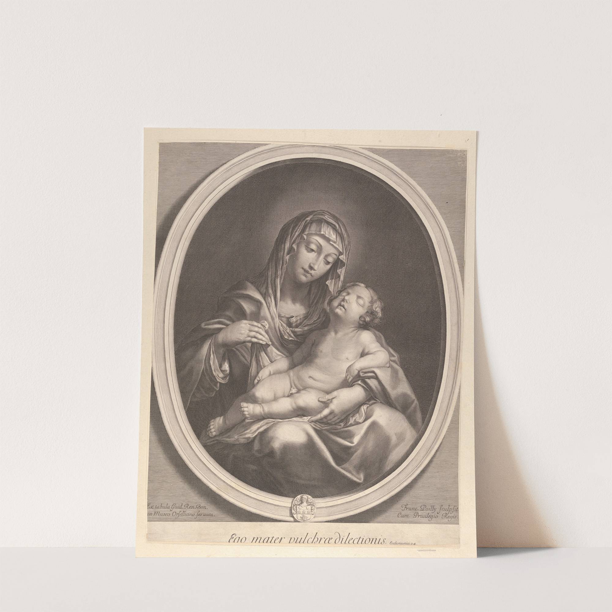 The Virgin seated with the infant Christ sleeping in her lap, in an oval frame, after Reni by Francois de Poilly - Wall Art Print