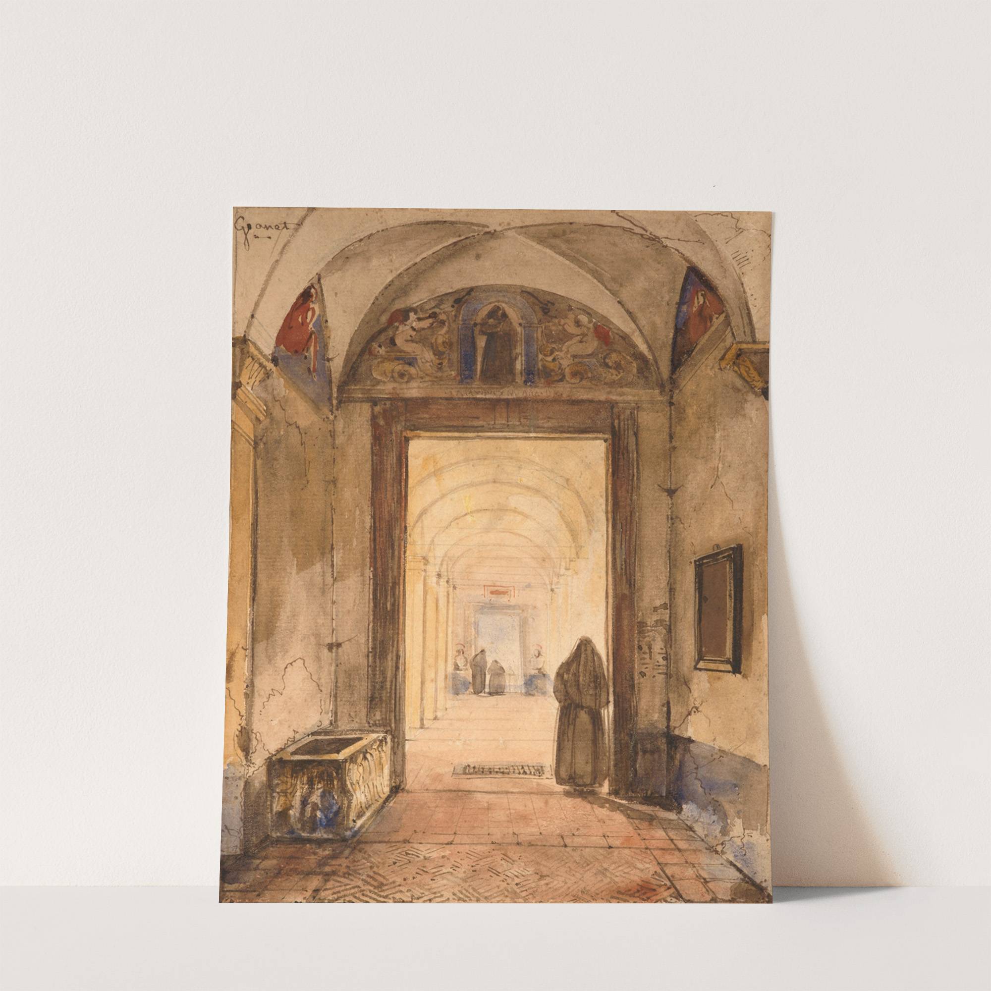Interior of cloister with a sarcophagus by François-Marius Granet - Wall Art Print