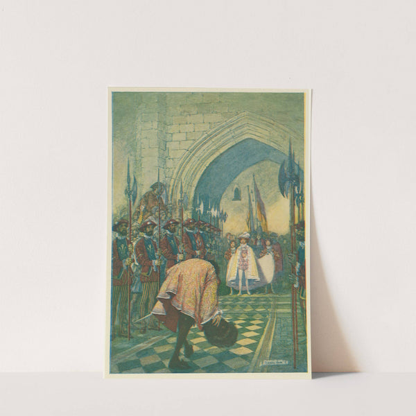 He turned, doffed his plumed cap, bent his body in low reverence, and began to step backward. by Franklin Booth - Wall Art Print