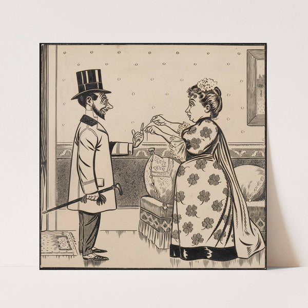 Nine comic strip frames of man dropping molasses and feathers on lions beneath his hammock Pl.5 by Franklin Morris Howarth - Wall Art Print