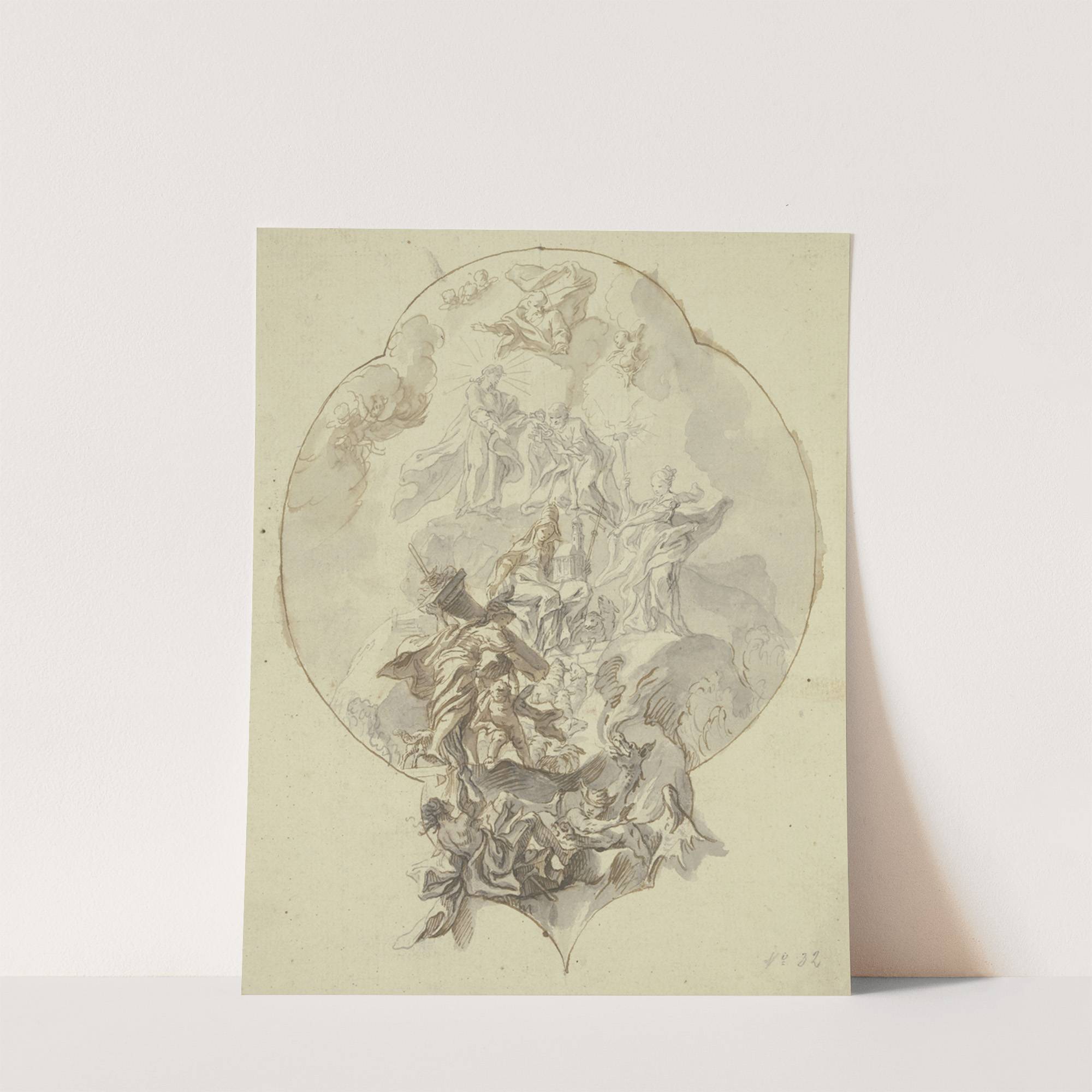 Der Apostel Petrus und die Heilige Agnes vor Christus und Gottvater by Franz Martin Kuen - Wall Art Print