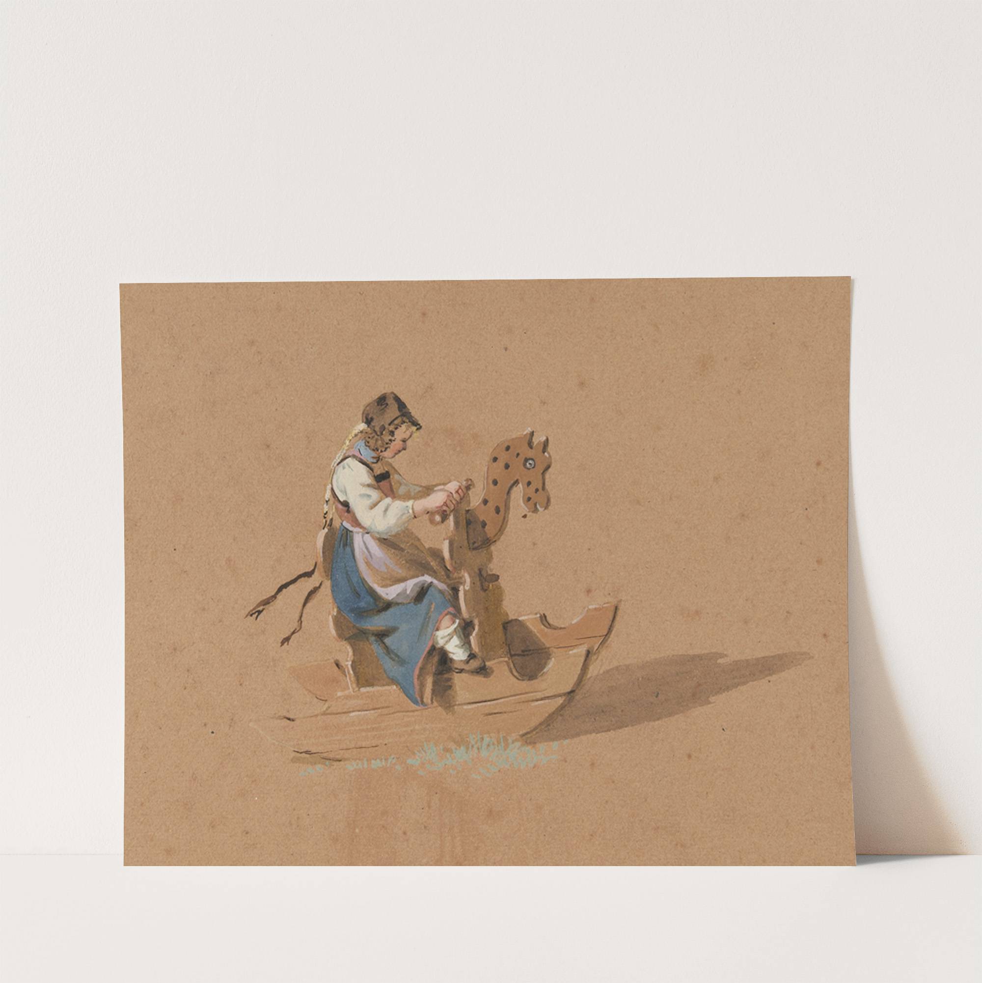 Mädchen auf Schaukelpferd (1827) by Franz Niklaus König - Wall Art Print