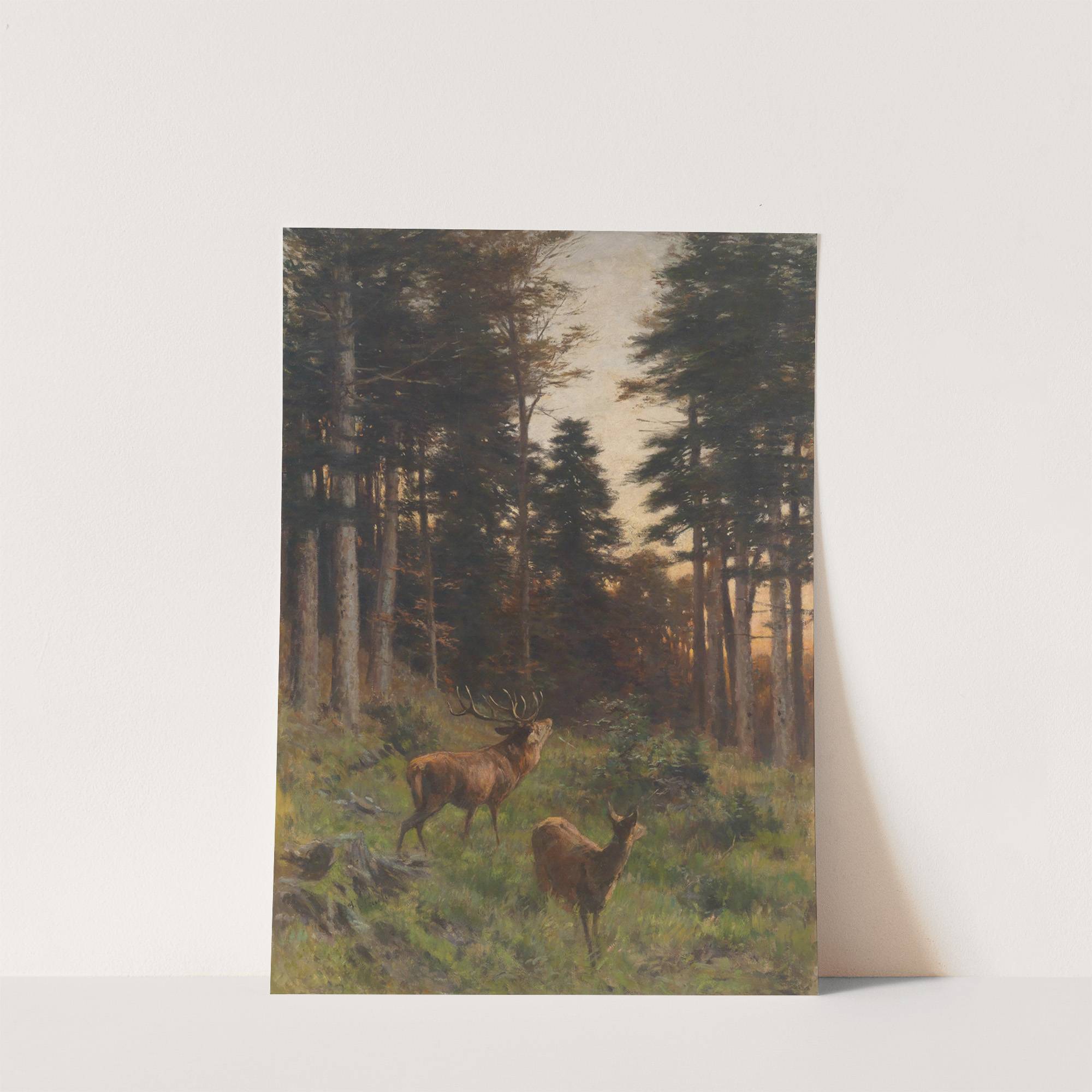 Rotwild In Der Abenddämmerung by Franz Xaver von Pausinger - Wall Art Print