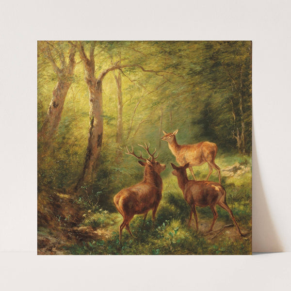 Rotwild in sonniger Waldlichtung by Franz Xaver von Pausinger - Wall Art Print