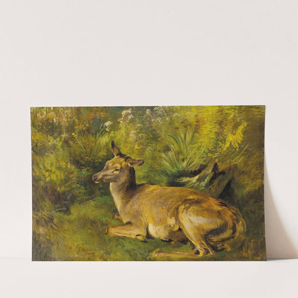 Ruhende Hirschkuh by Franz Xaver von Pausinger - Wall Art Print