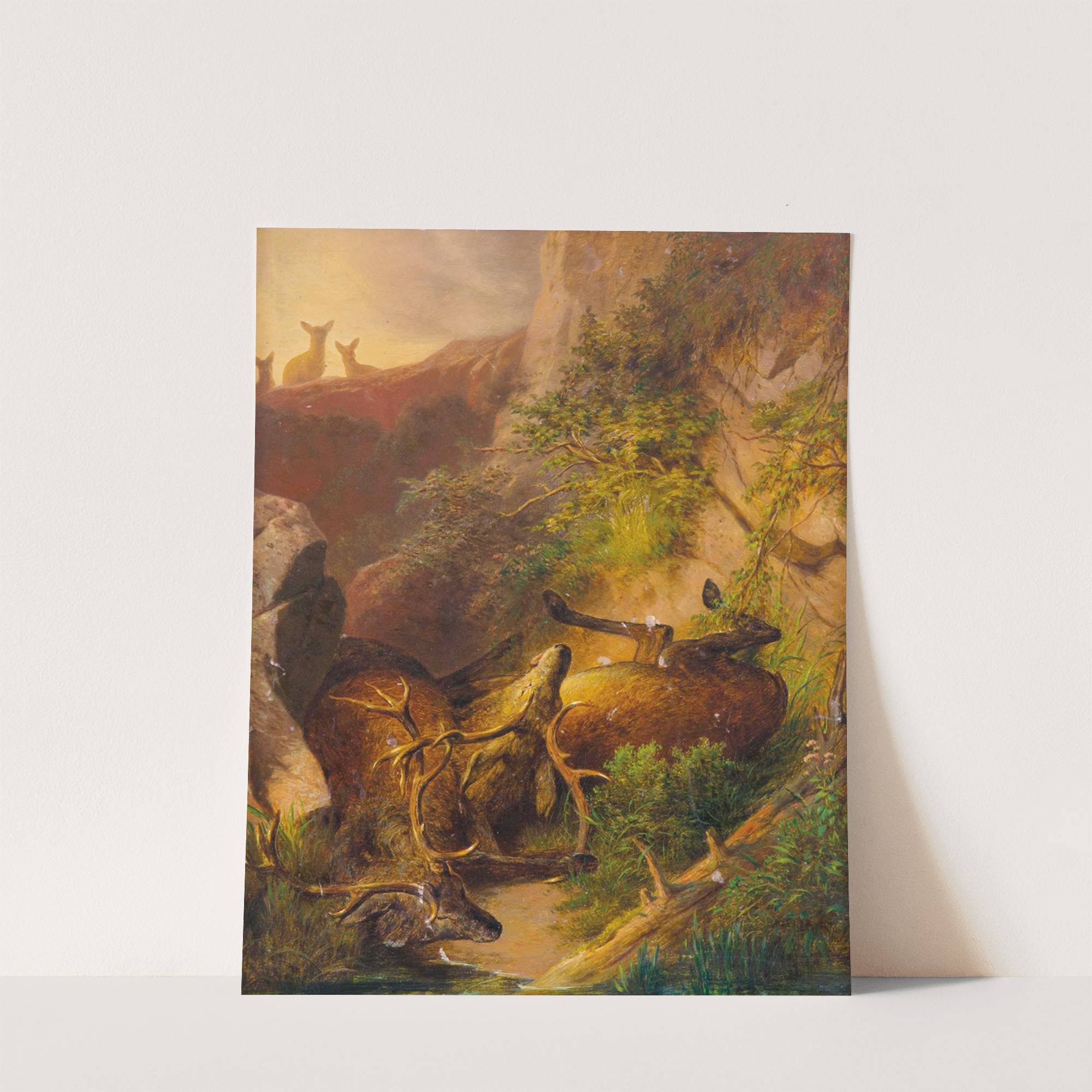 Zwei in der Brunftzeit abgestürzte Hirsche im Hochgebirge by Franz Xaver von Pausinger - Wall Art Print