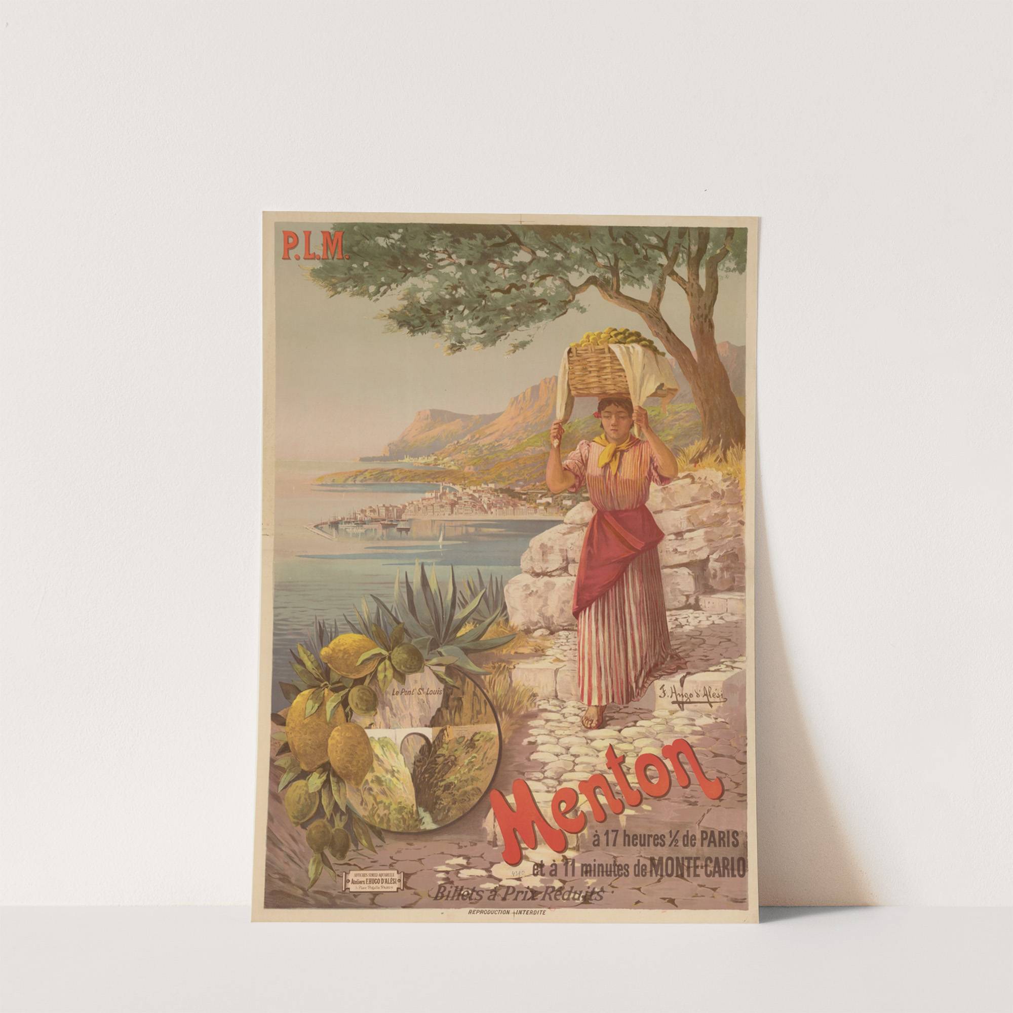 P.L.M. Paris-Lyon-Méditerrannée Menton à 17 heures 1,2 de Paris et à 11 minutes de Monte-Carlo (1898) by Frederic Hugo d’ Alési - Wall Art Print