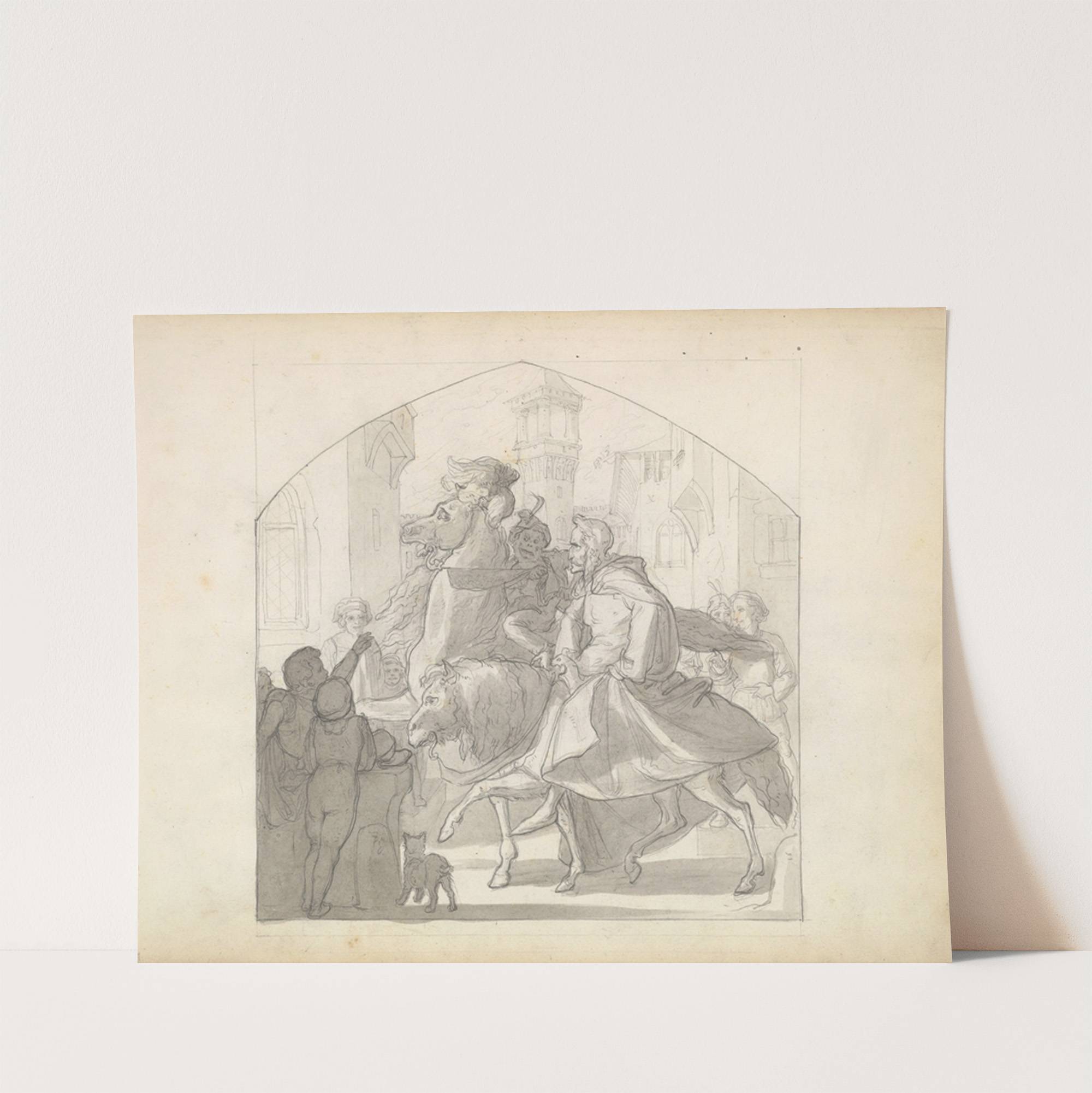 A Man and a Monkey Riding on Horseback by Frederic Leighton - Wall Art Print