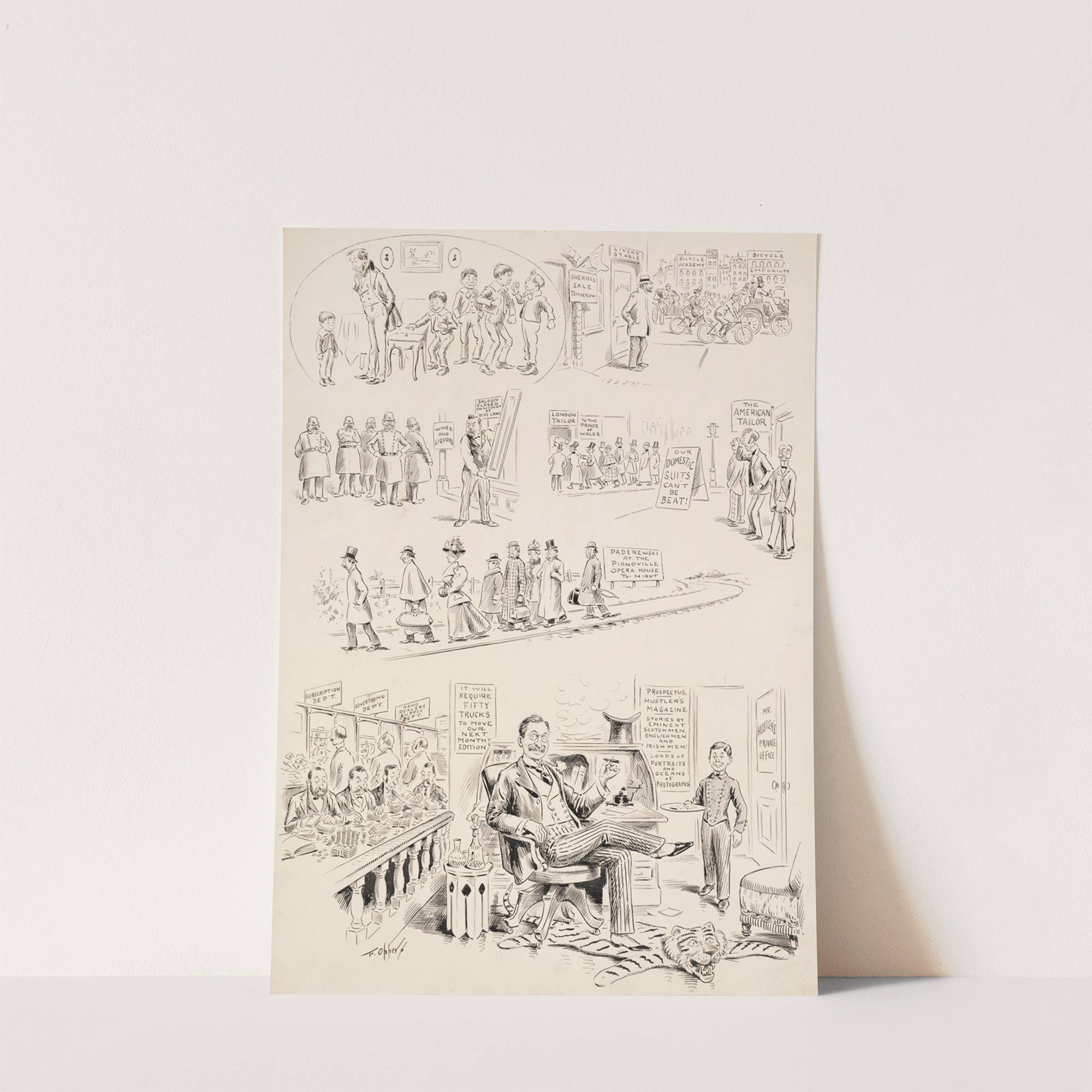 Scenes of the failure of a livery stable, saloon, and American tailors, and of the success of Hustler’s Magazine. by Frederick Burr Opper - Wall Art Print
