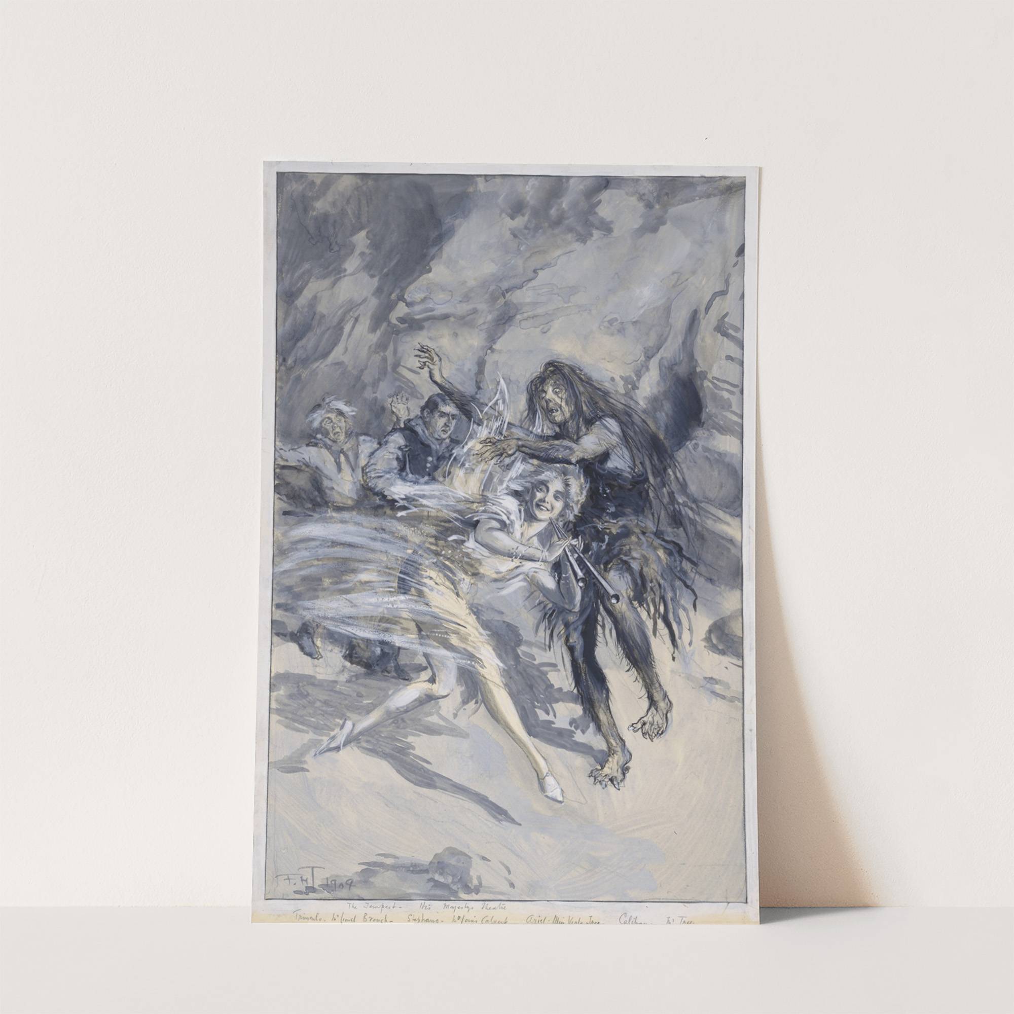 The tempest, II, 1, Mr. Lionel Brough as Trinculo, Mr. Louis Calvert as Stephano, Viola Tree as Ariel (1904) by Frederick Henry Townsend - Wall Art Print