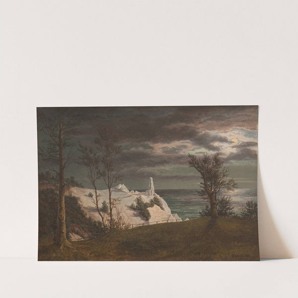 The ‘Summer Spire’ on the Chalk Cliffs of the Island Møn. Moonlight by Frederik Sødring - Wall Art Print