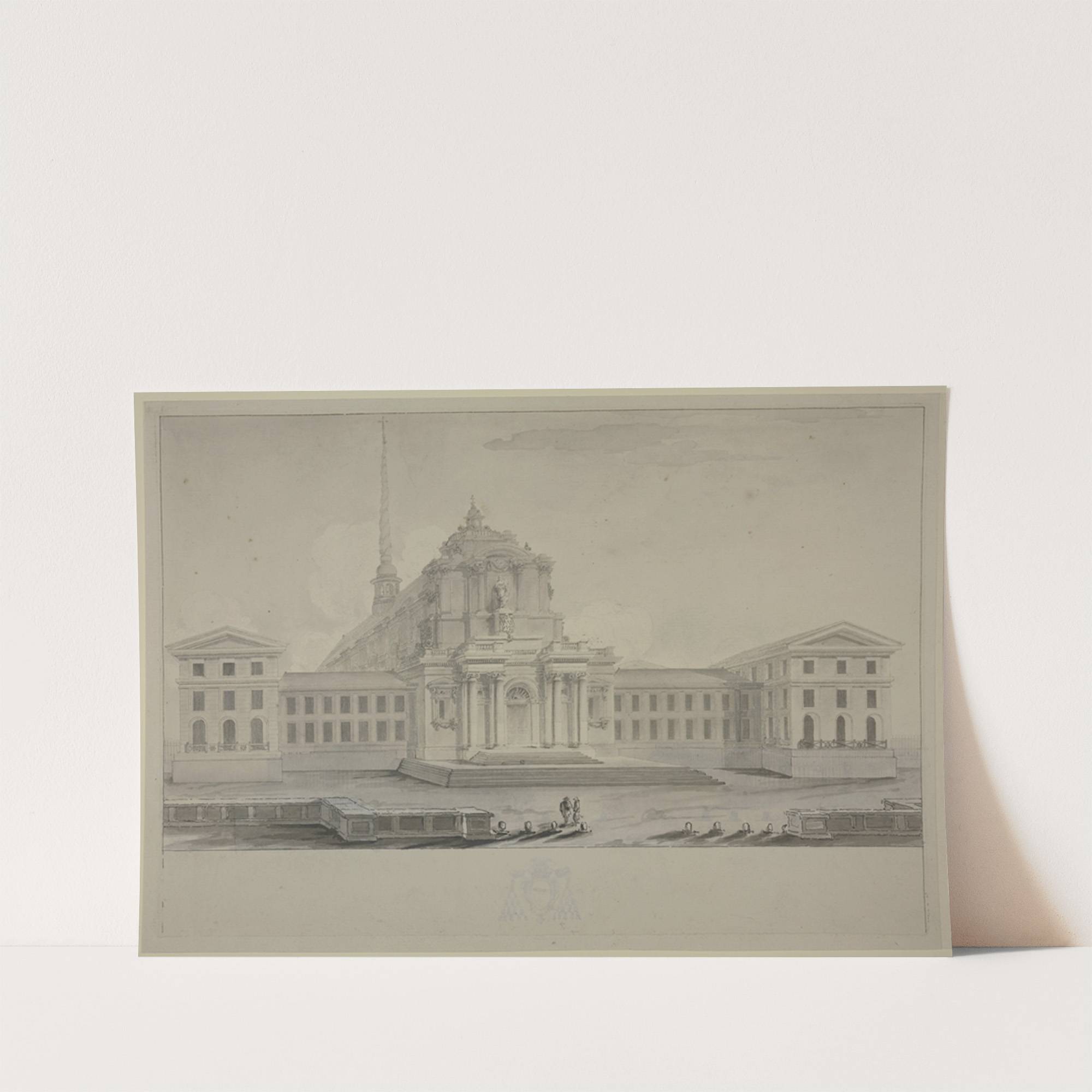 Ansicht eines Domes zwischen zwei Flügelgebäuden mit gewundener Turmspitze by Jacques-François Blondel - Wall Art Print