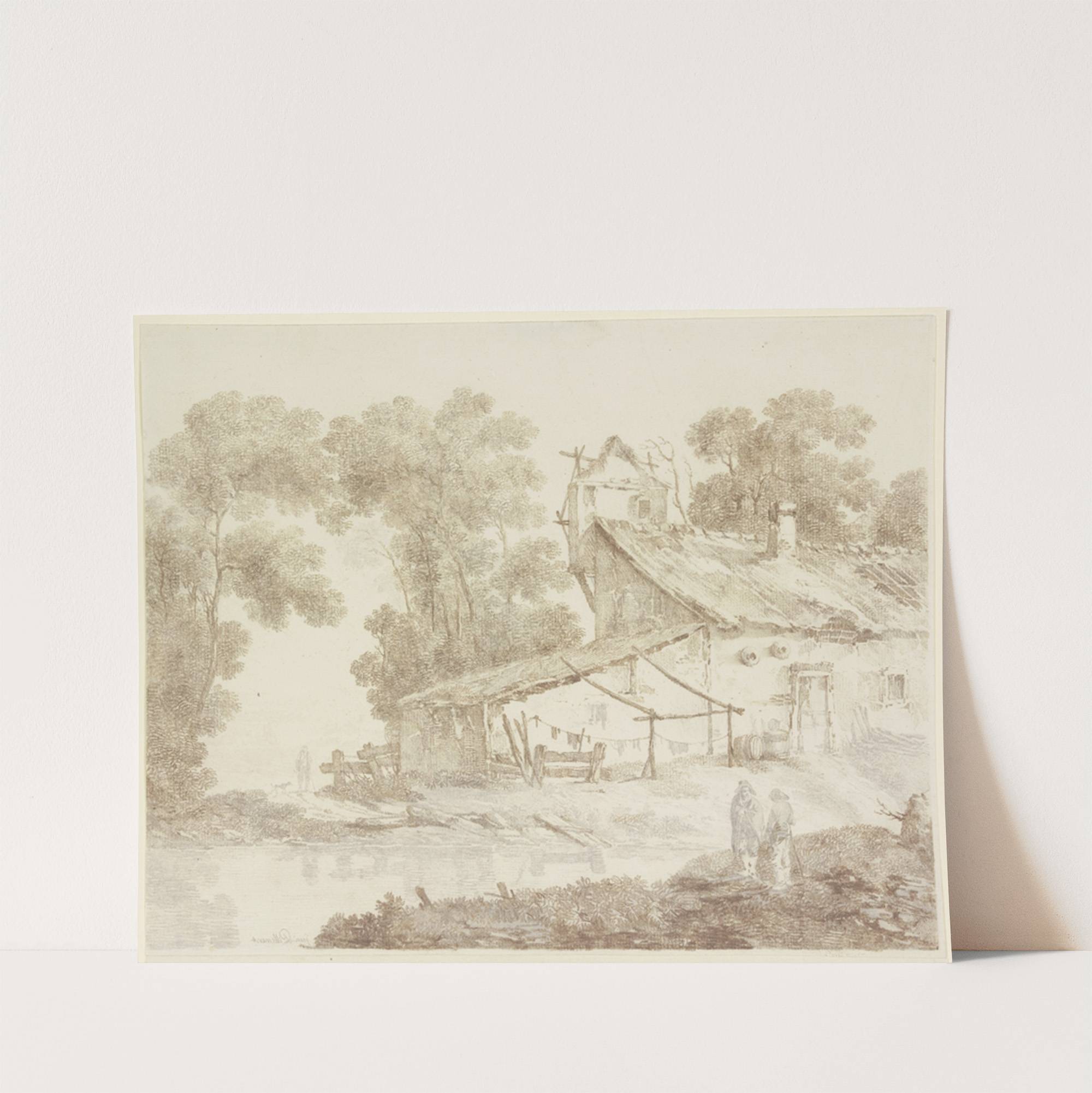 Ärmliches Bauernhaus an einem Gewässer, mit aufgehängter Wäsche by Jean-Baptiste Pillement - Wall Art Print