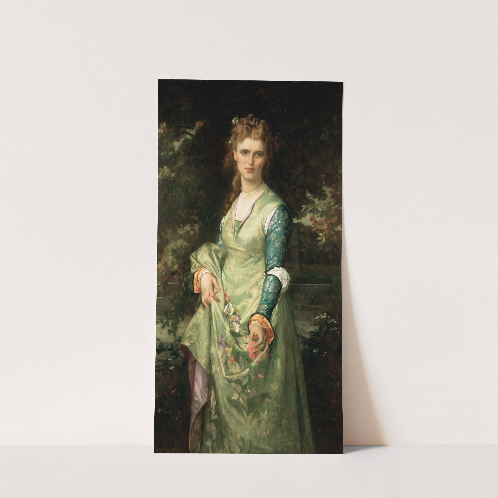 Introducing "Portrait of a Young Lady" by Christina Nilsson, beautifully rendered in the classic Realist style by artist Alexandre Cabanel. This captivating art print features a young woman with delicate yet expressive facial features and soft brown hair styled elegantly....