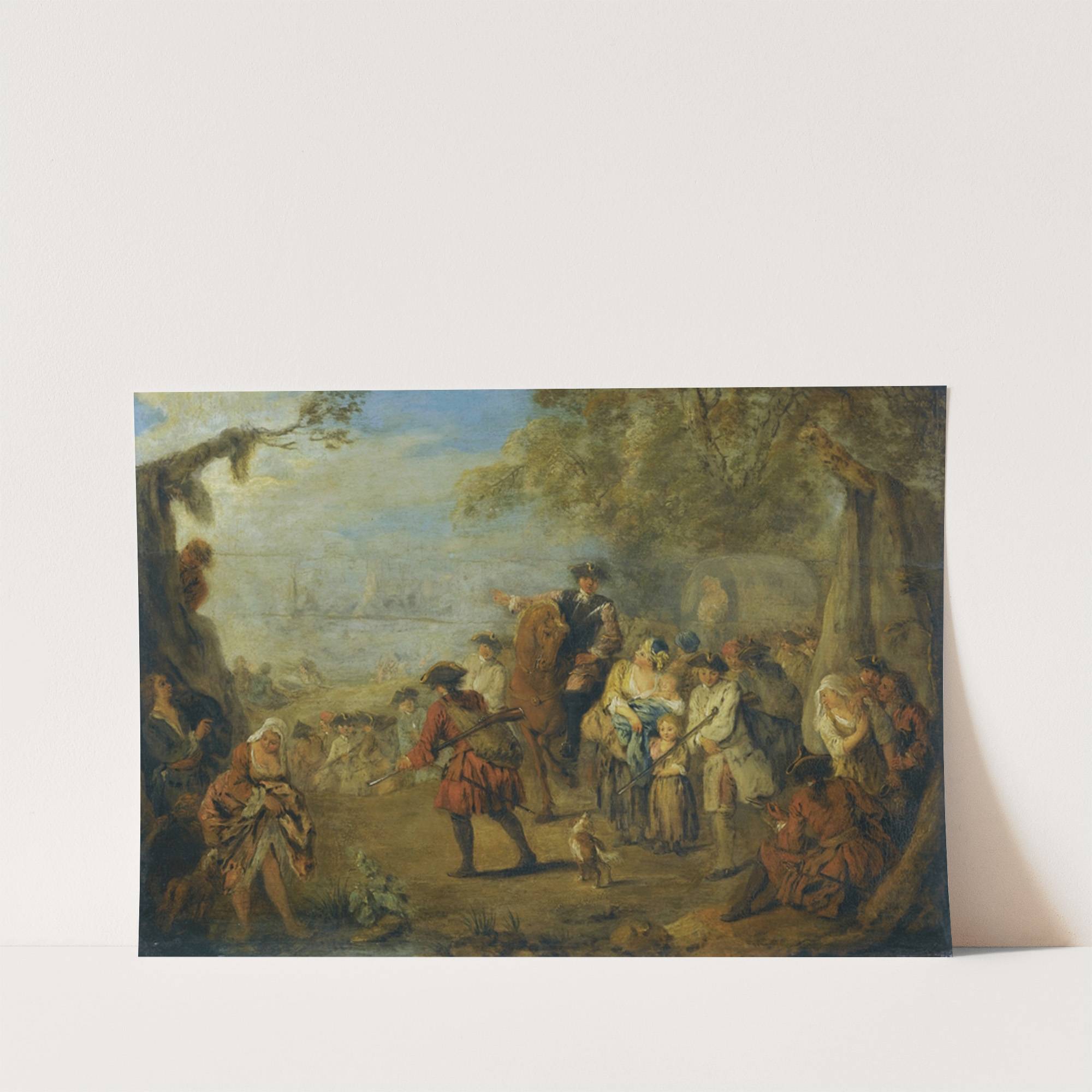 Figures In A Military Encampment With A Horseman Directing Troops by Jean-Baptiste Pater - Wall Art Print