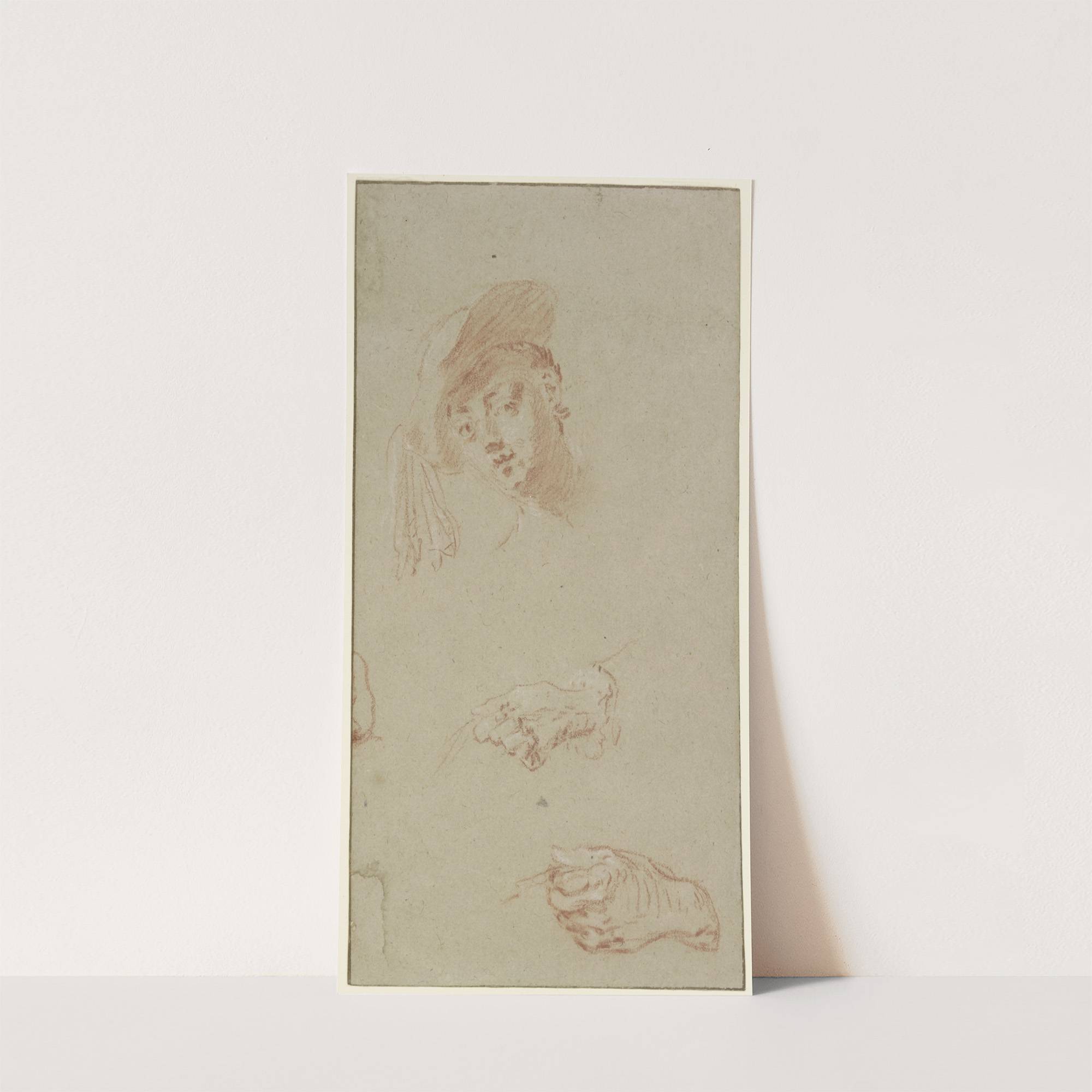 Head and two hands by Nicolas Lancret - Wall Art Print