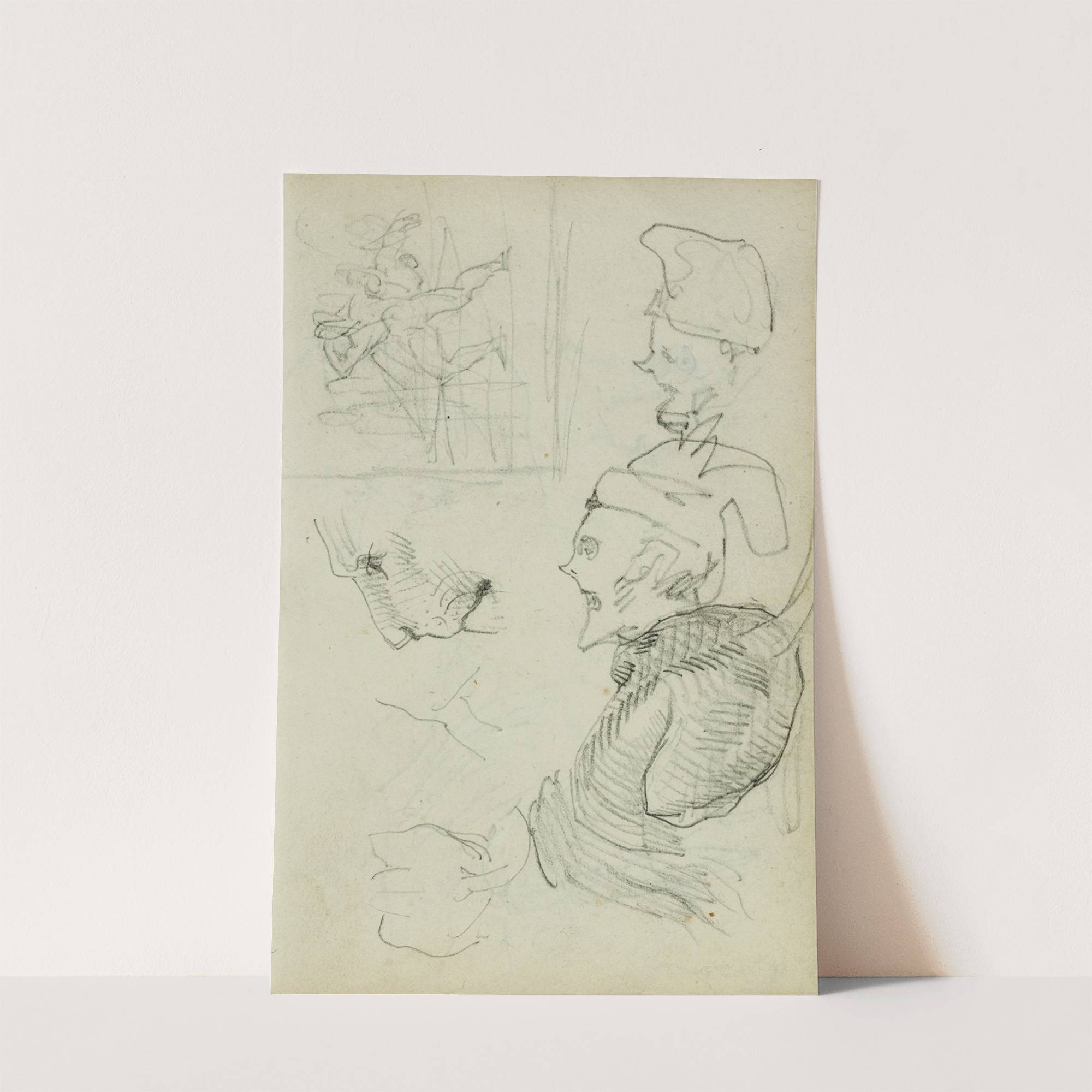 Studies of lion, compositional group figure study, two caricature head studies by Théodore Géricault - Wall Art Print