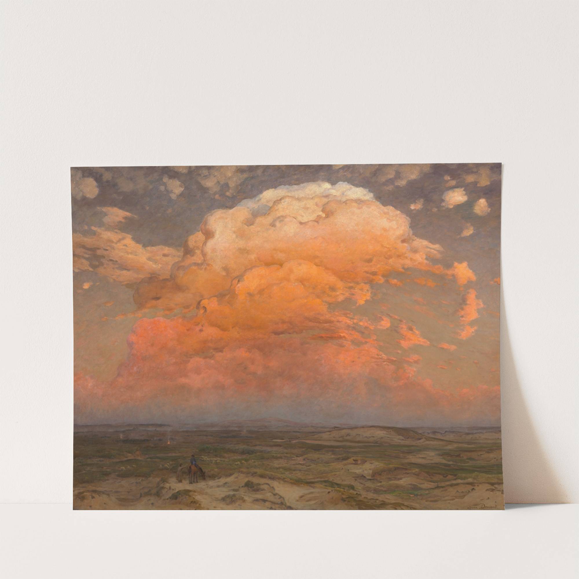 This stunning art print features "The Cloud" by Adrien-Louis Demont, showcasing a breathtaking sunset landscape. Dominating the sky is an immense, billowing cloud rendered in vivid hues of orange and pink, which catches the eye with its luminous, almost glowing...