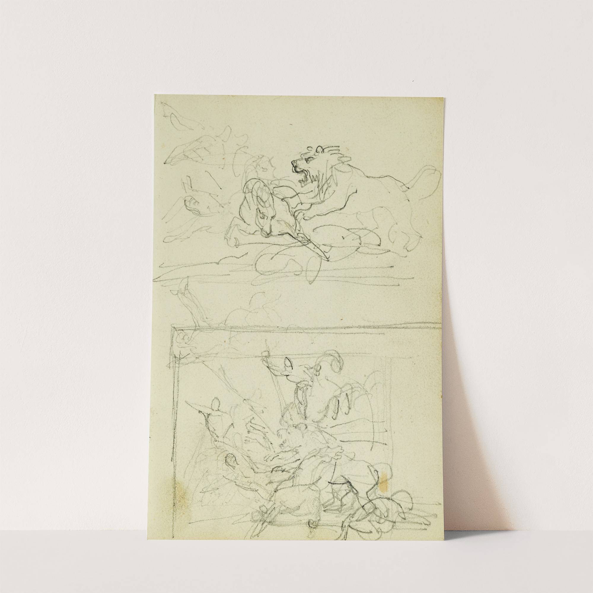 Two compositional studies of a lion hunt by Théodore Géricault - Wall Art Print