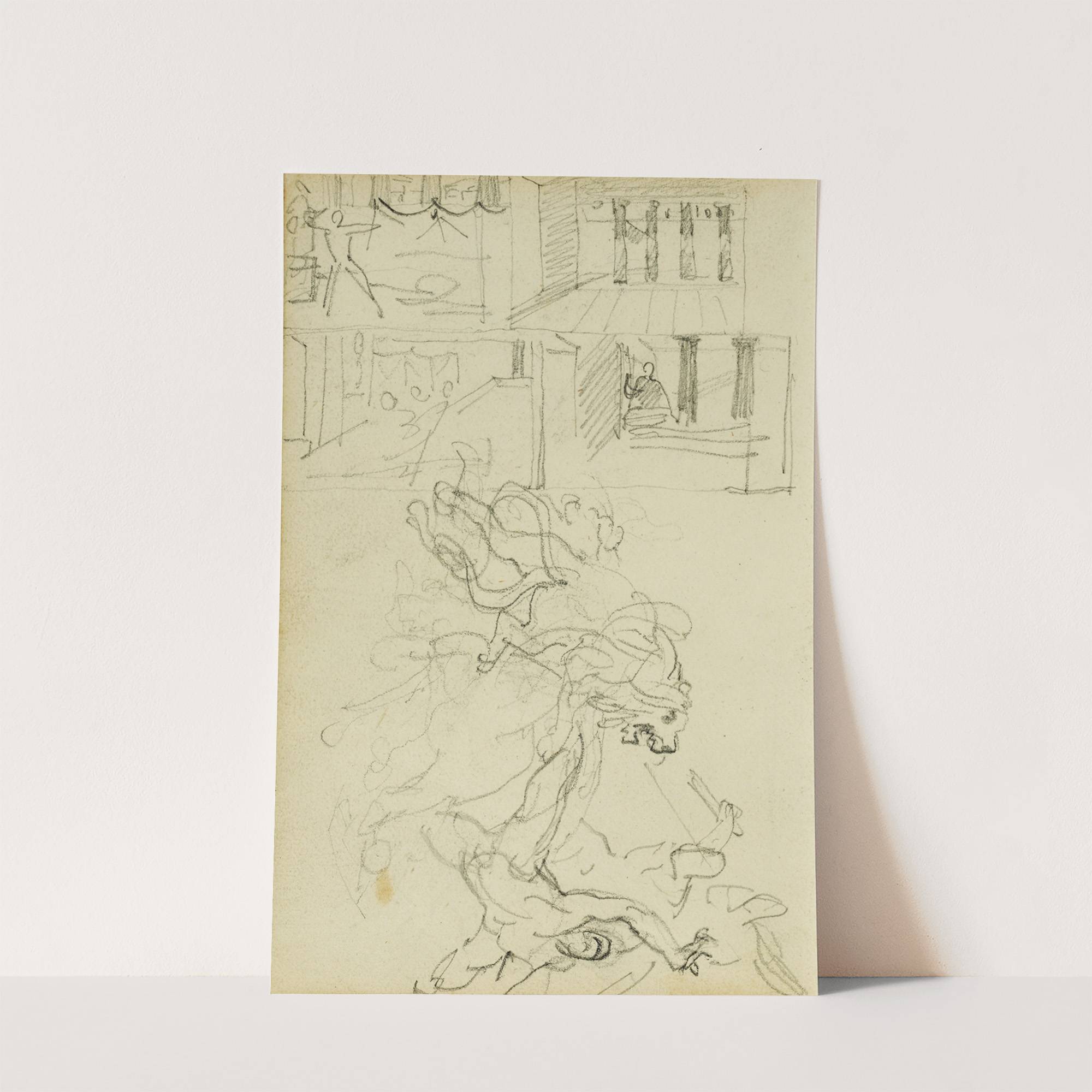 Two compositional studies of a lion hunt by Théodore Géricault - Wall Art Print
