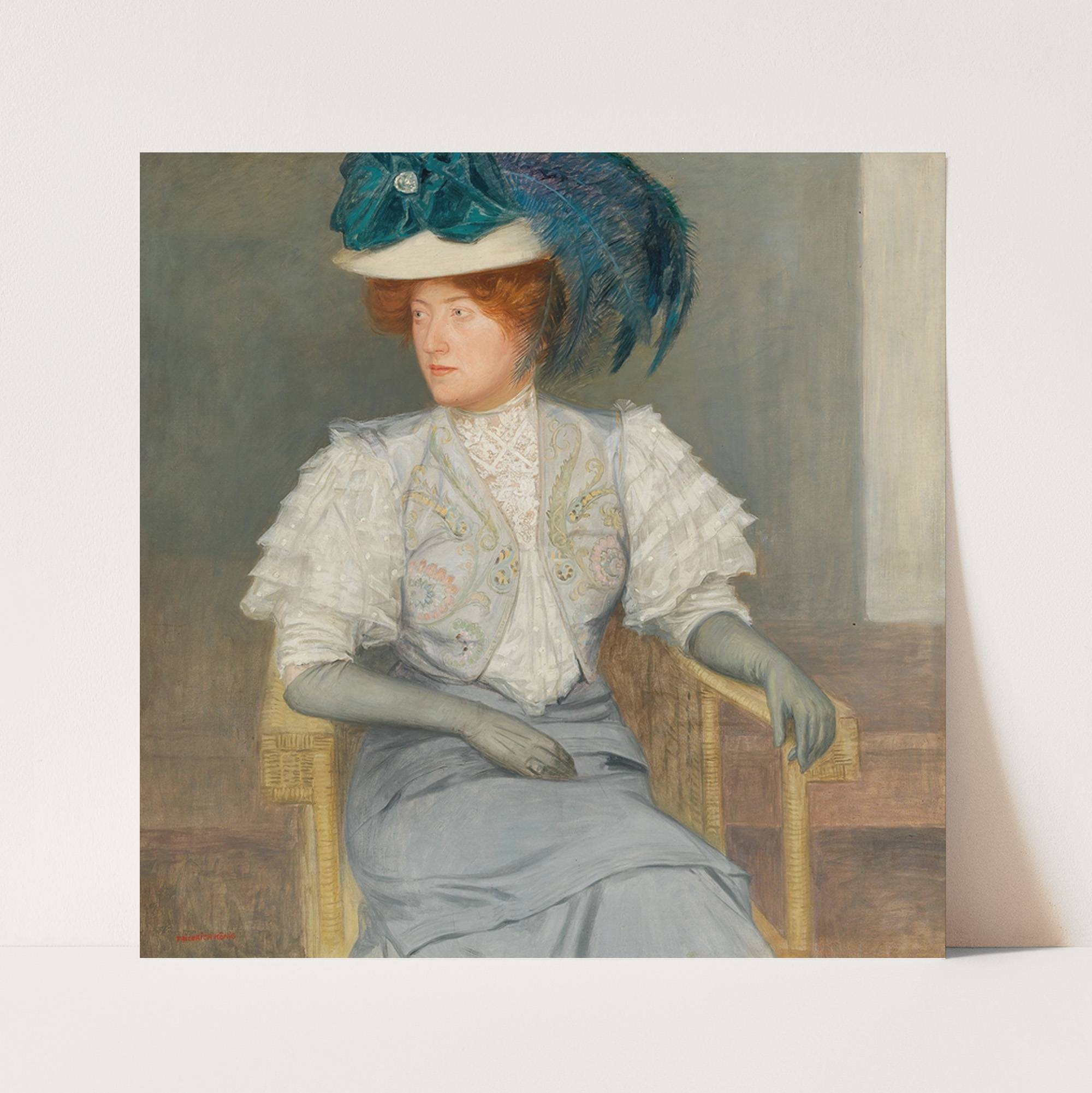 Damenbildnis mit grünem Federhut und Masche by Friedrich König - Wall Art Print