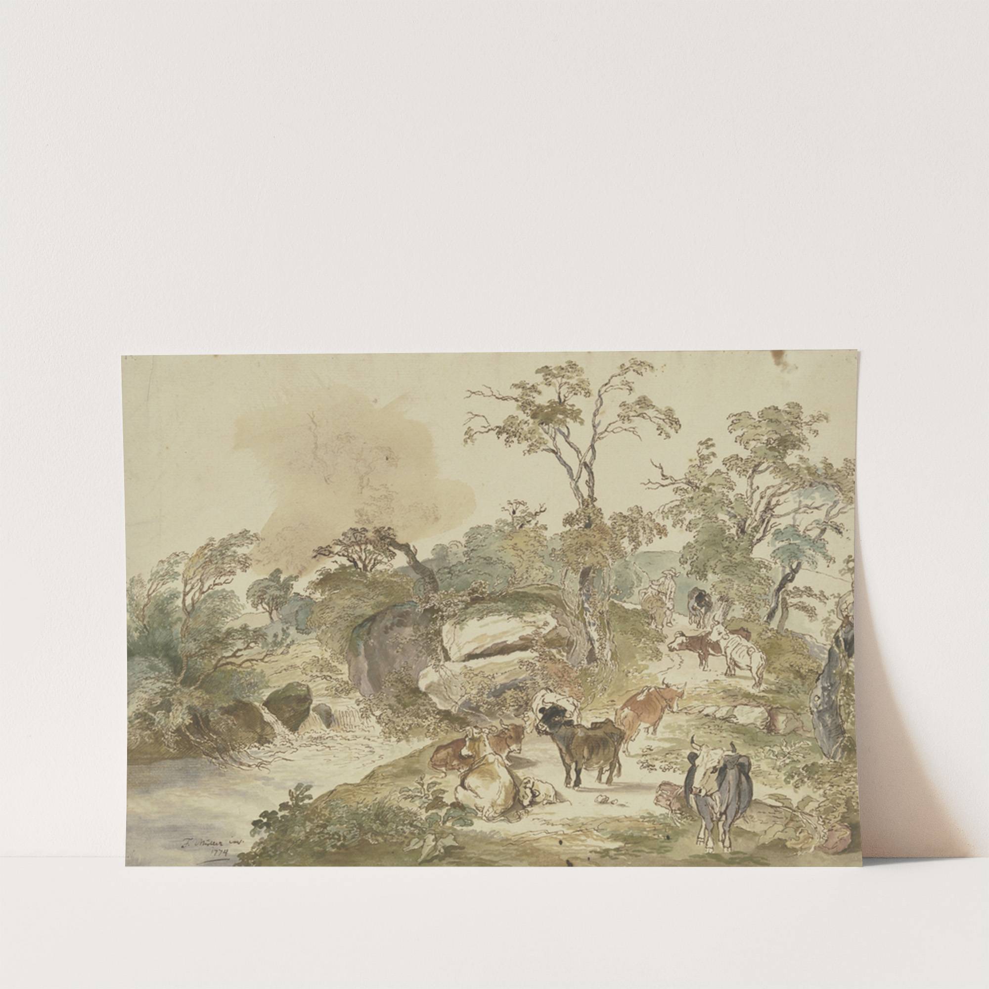 Rinderherde an einem Bach, im Hintergrund der Hirte by Friedrich Müller - Wall Art Print