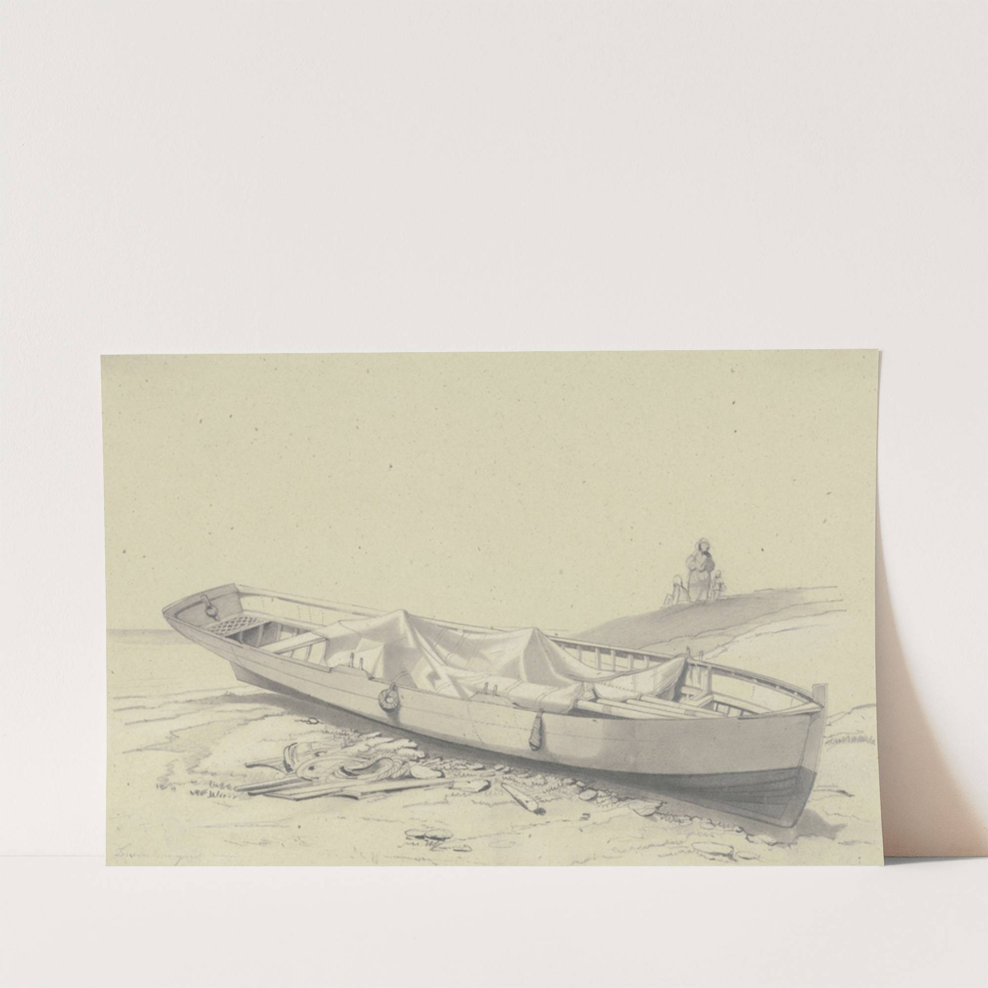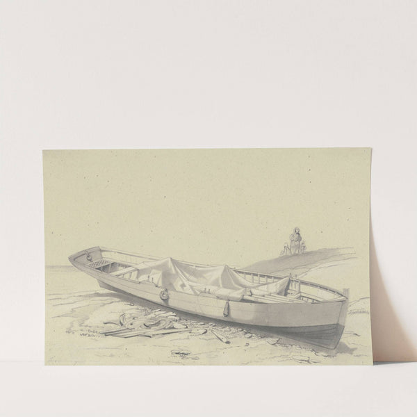 Ein Boot auf dem Strande liegend, in der Ferne drei Figuren by Fritz Bamberger - Wall Art Print