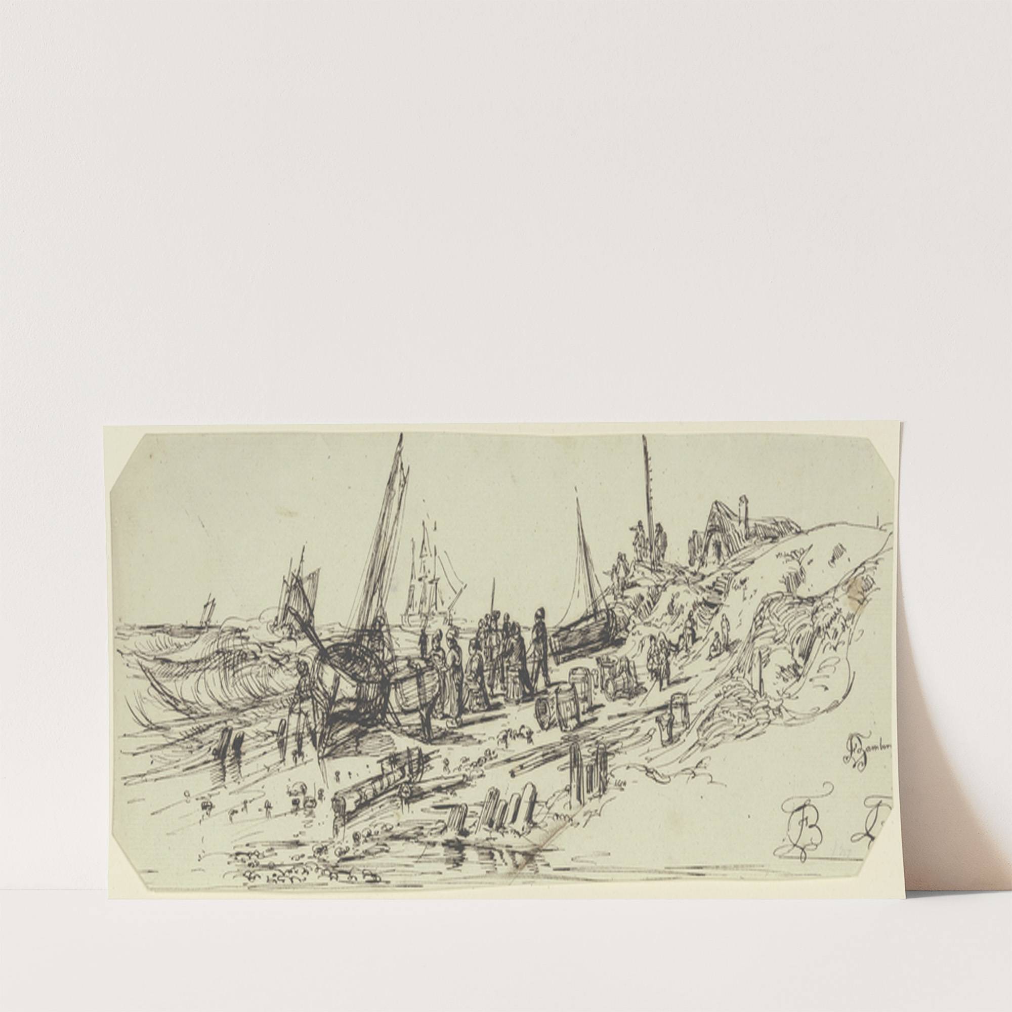 Heimkehrende Fischer am Strand by Fritz Bamberger - Wall Art Print