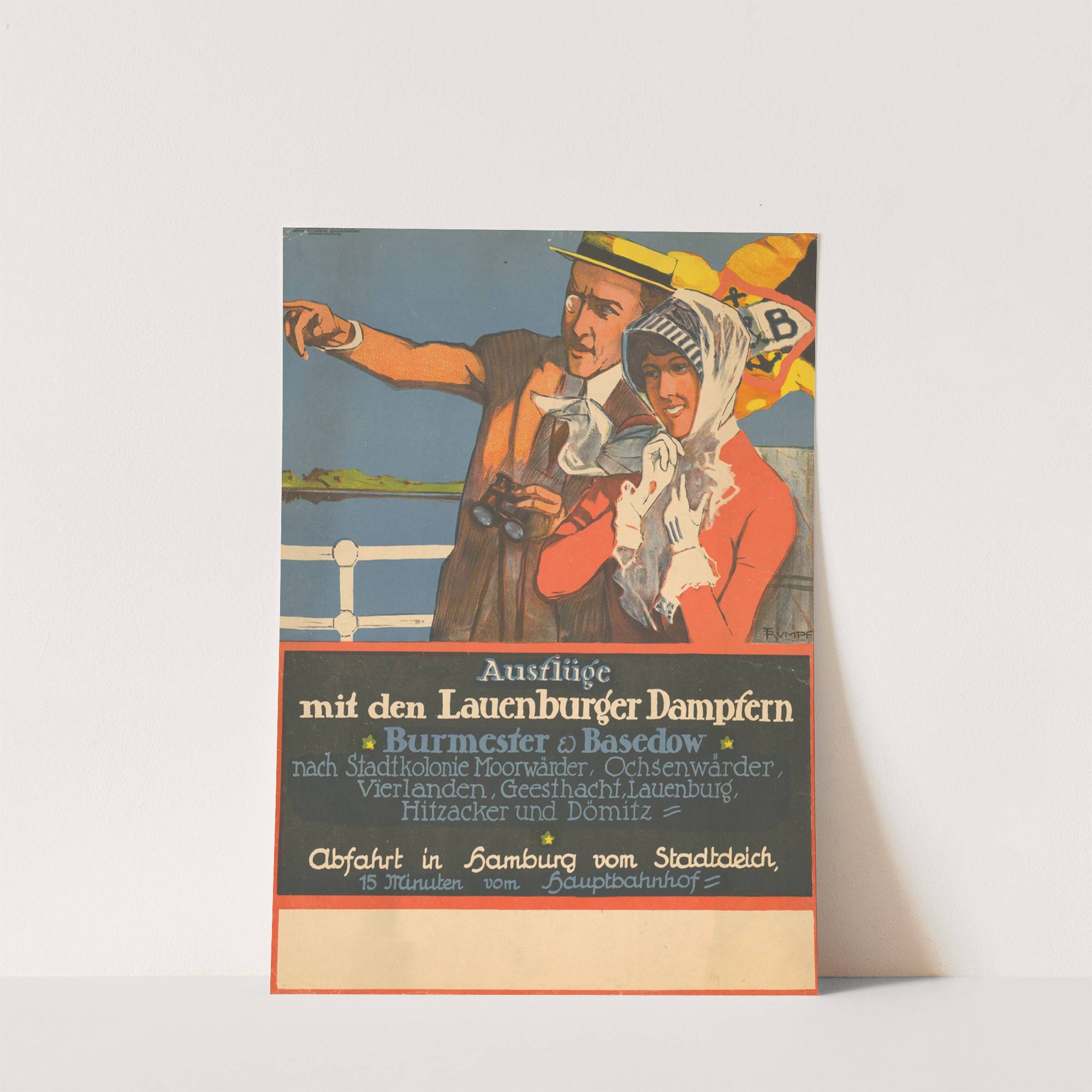 Ausflüge mit den Lauenburger Dampfern Burmeister & Basedow (1911) by Fritz Rumpf - Wall Art Print