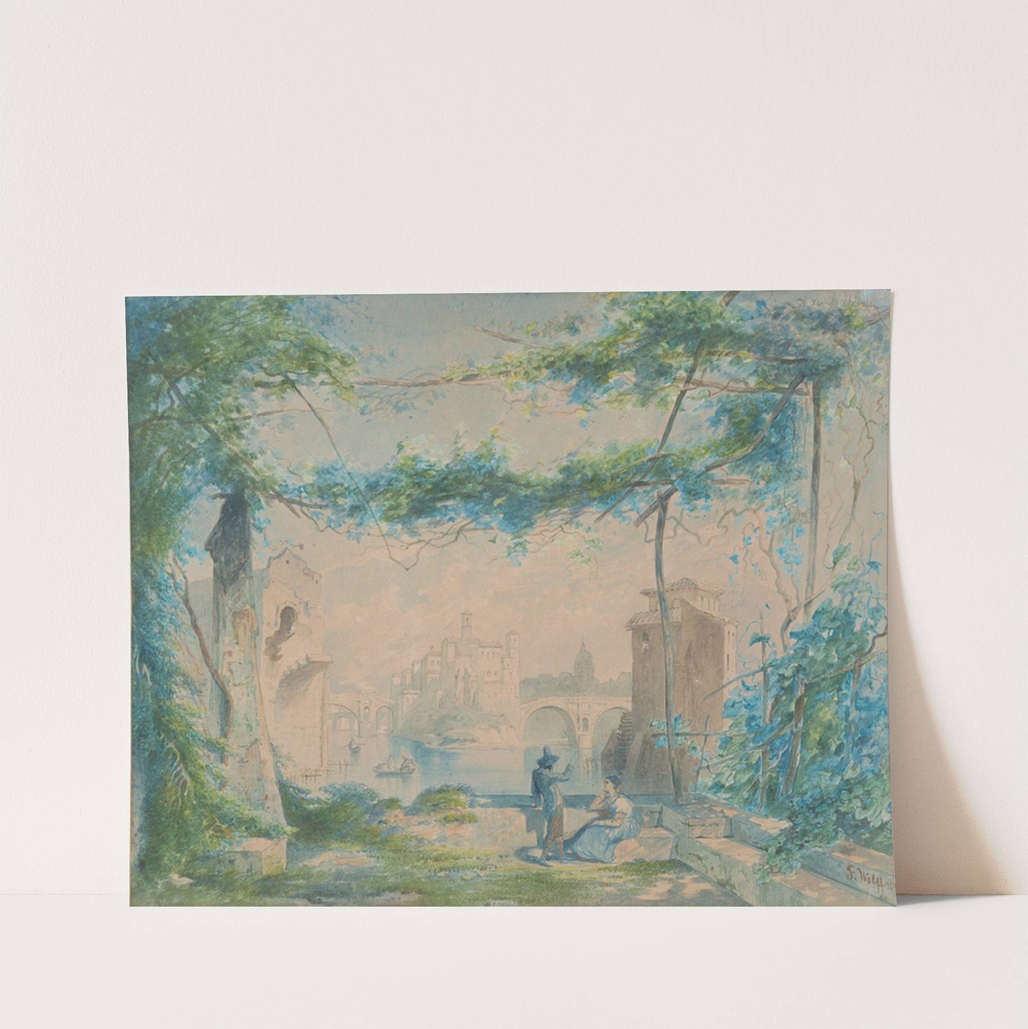 Italian Landscape With Couple At The River by Fritz Wolff - Wall Art Print
