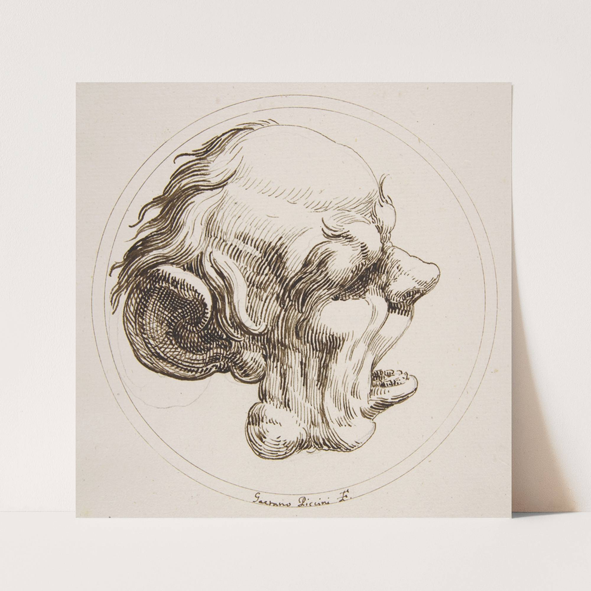 Grotesque Head With a Large Ear and an Open Mouth Looking to the Right Within a Circle by Gaetano Piccini - Wall Art Print