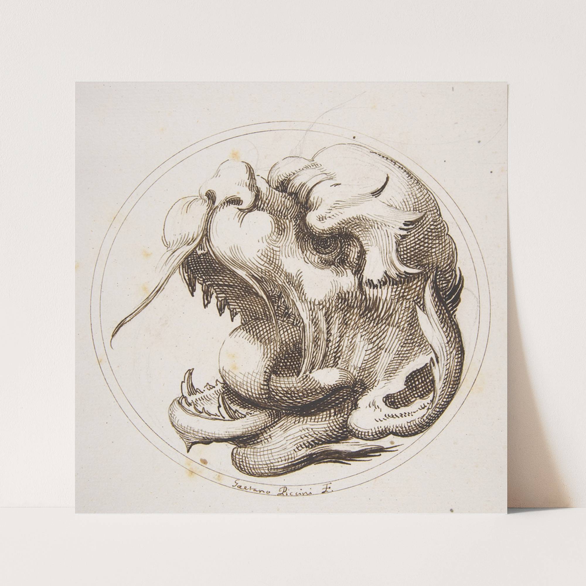 Large Grotesque Head With an Open Mouth Looking to the Left Within a Frame by Gaetano Piccini - Wall Art Print