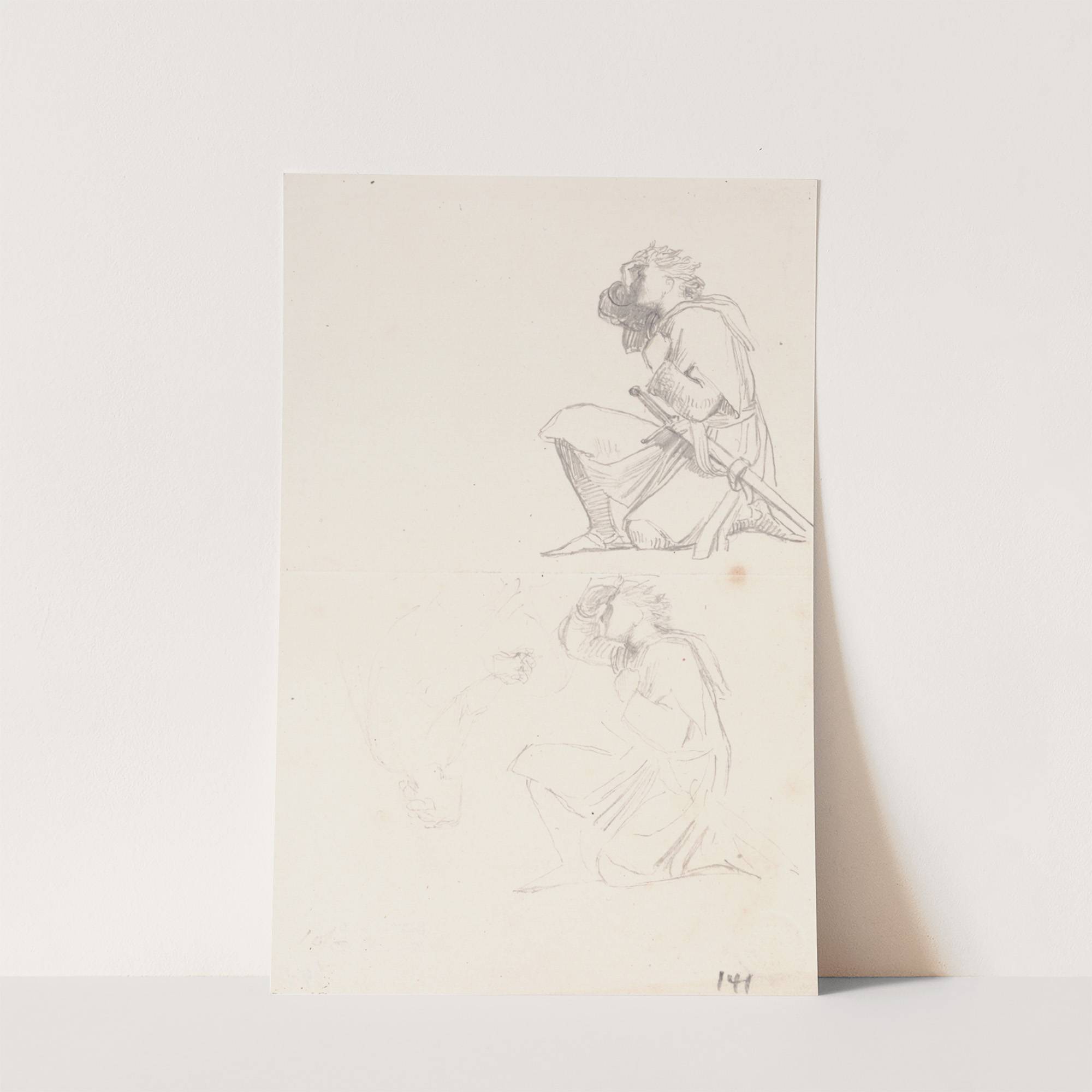 Studies of a kneeling knight by George Frederic Watts - Wall Art Print
