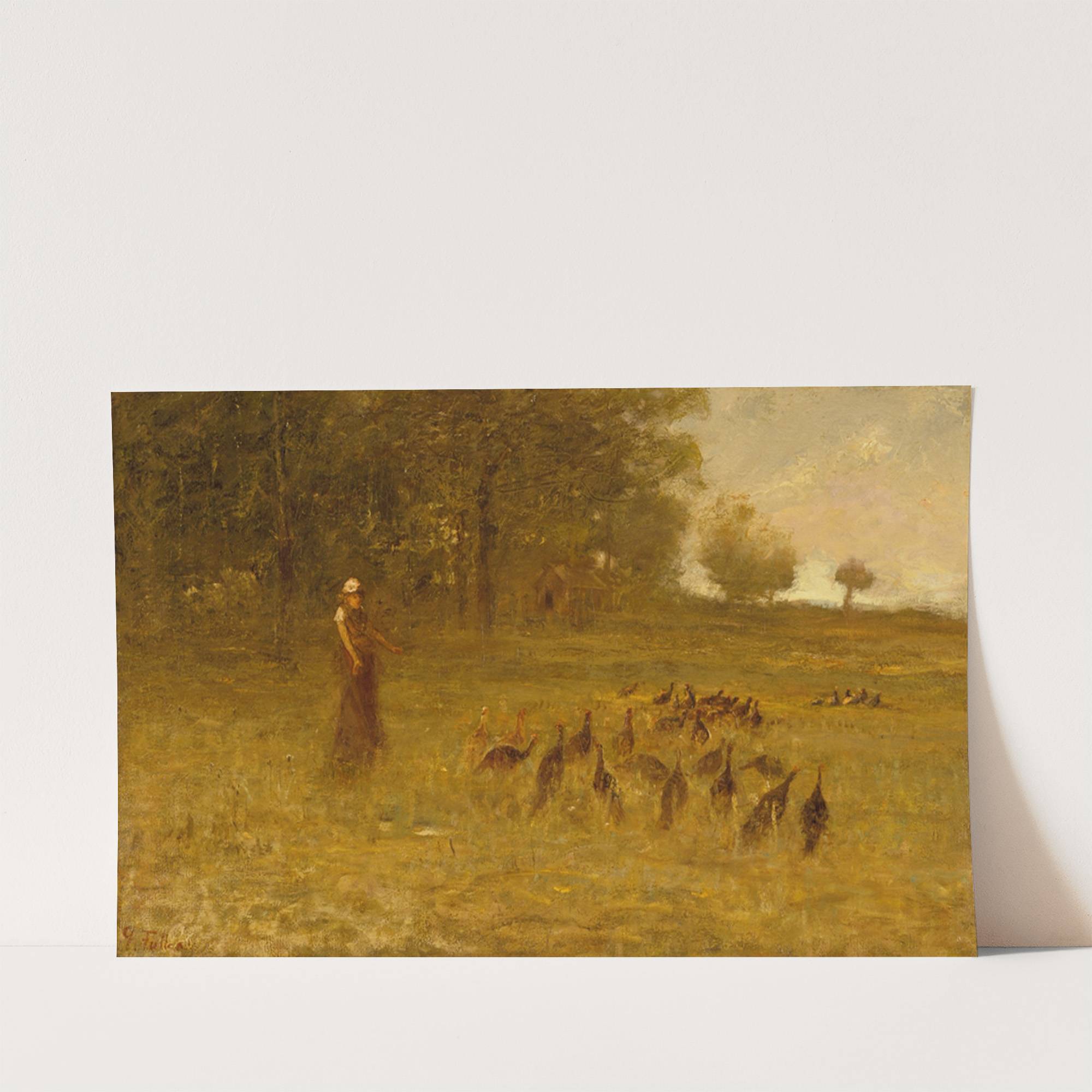 Girl with Turkeys by George Fuller - Wall Art Print