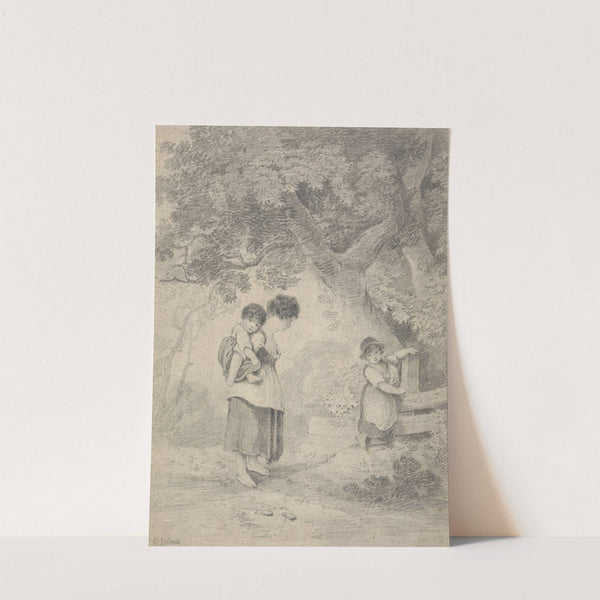 Study of a Girl with Two Children at a Stile by George Holmes - Wall Art Print