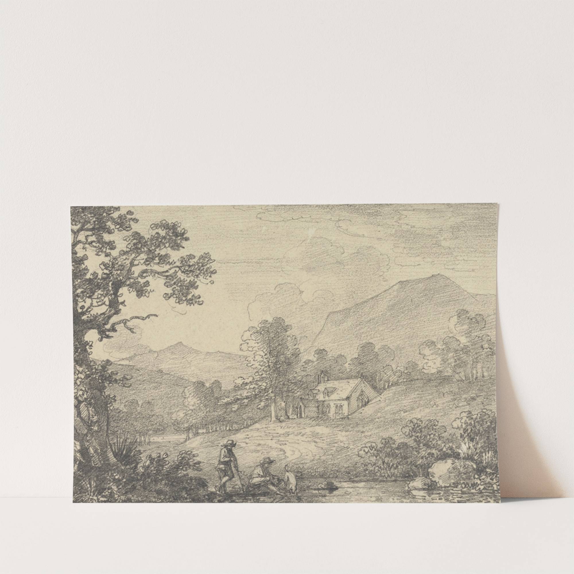 Two Figures by the Side of a Pond and a Church in a Hilly Landscape by George Howland Beaumont - Wall Art Print