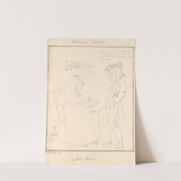 Matrimonial Comforts!!; Late Hours!! by George Moutard Woodward - Wall Art Print