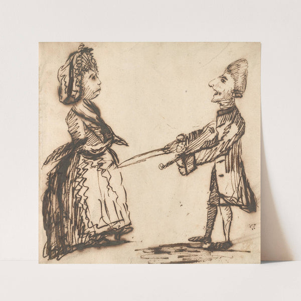 Woman and Man with Sword by George Moutard Woodward - Wall Art Print