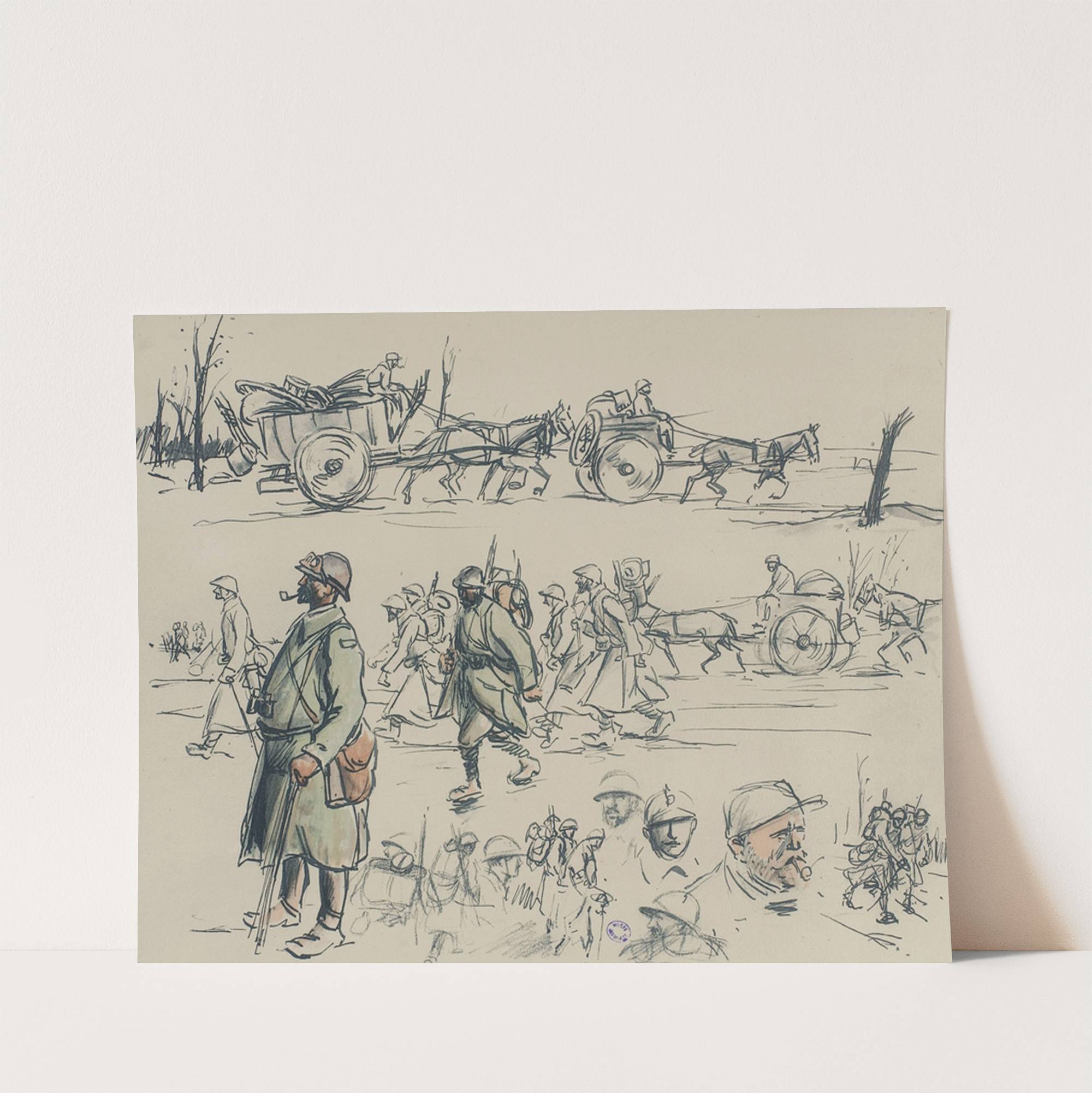Croquis de soldats et d’attelages sur trois registres by Georges Goursat (Sem) - Wall Art Print