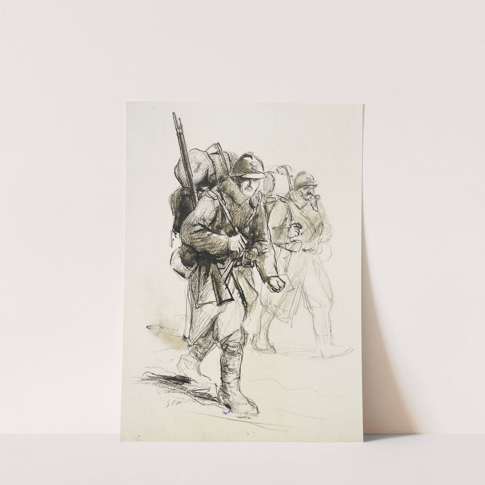 Deux soldats marchant sur la droite portant leur barda by Georges Goursat (Sem) - Wall Art Print