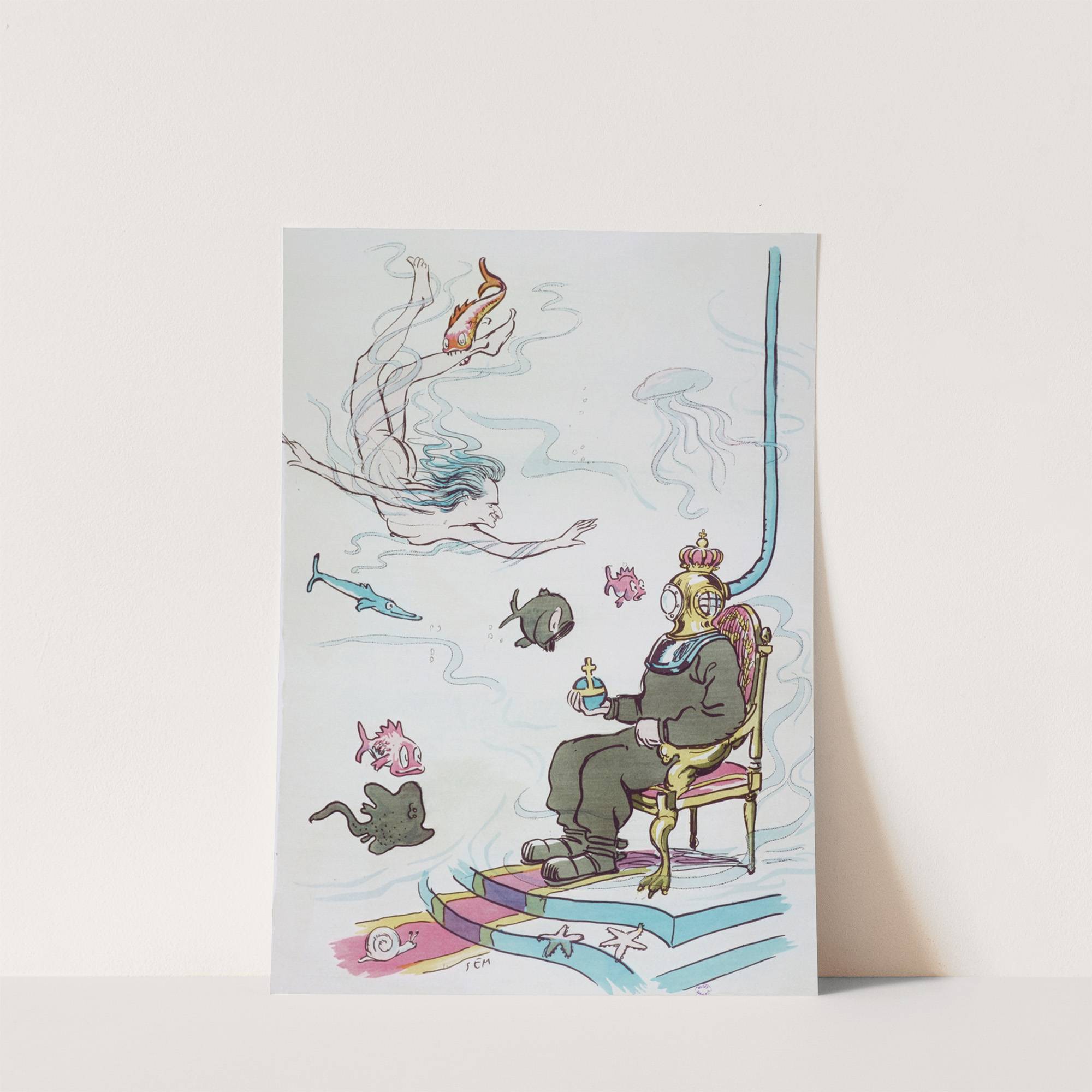 le divin Raoul (Gunsbourg) sous les gracieuses apparences d’une fille du Rhin, offre à son altesse sous-marinissime le sacrifice de Parsifal by Georges Goursat (Sem) - Wall Art Print