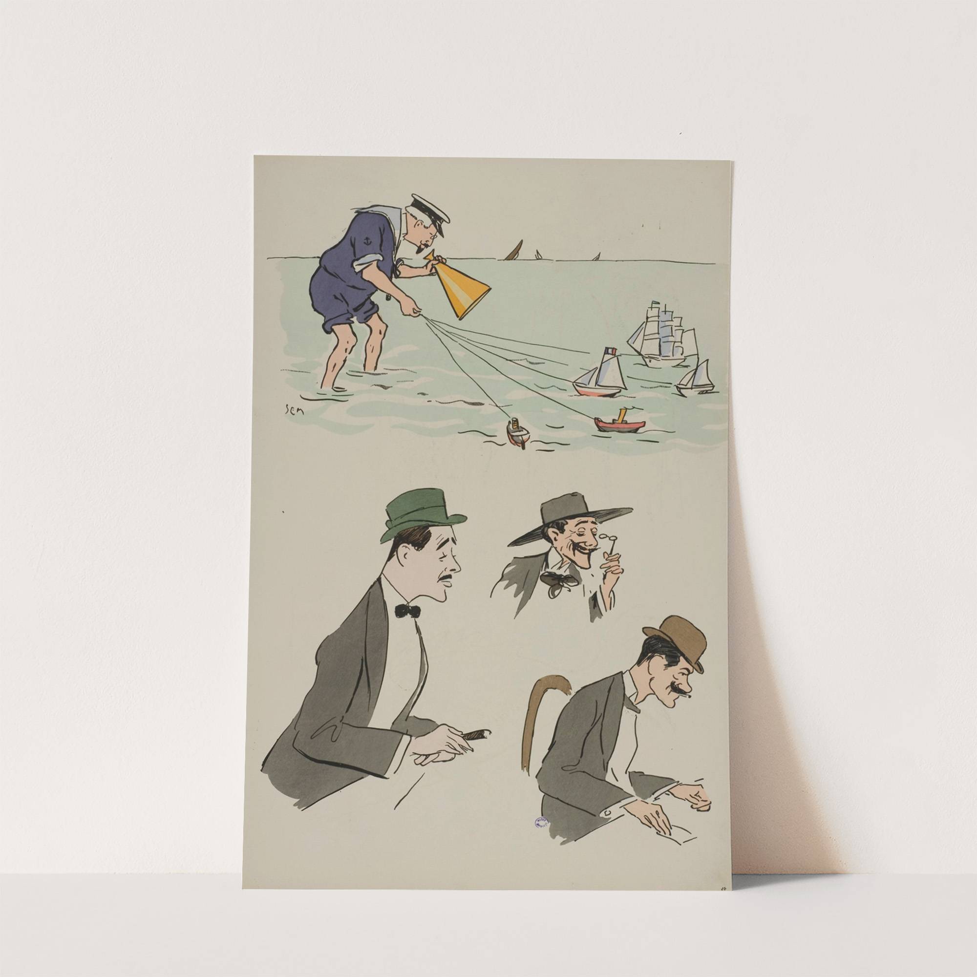 M Legru, comte Louis René de Gramont, comte Bruno de Boisgelin, inconnu by Georges Goursat (Sem) - Wall Art Print