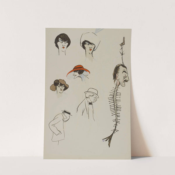 Myriam Danesco, toque, Germaine Thouvenin, arête de poisson, M du Tillet, monocle, M Aschwanden by Georges Goursat (Sem) - Wall Art Print