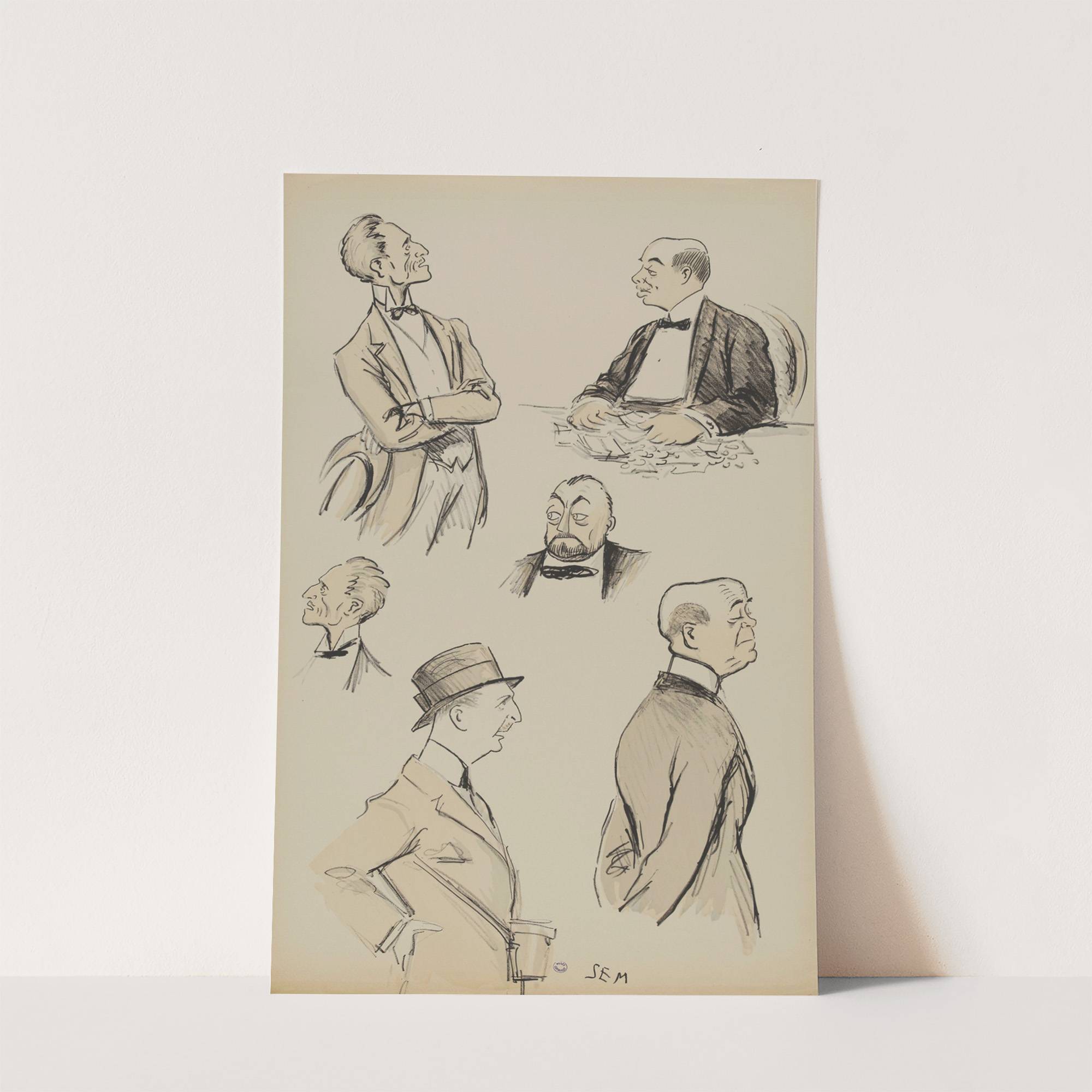 têtes ou bustes de cinq messieurs by Georges Goursat (Sem) - Wall Art Print