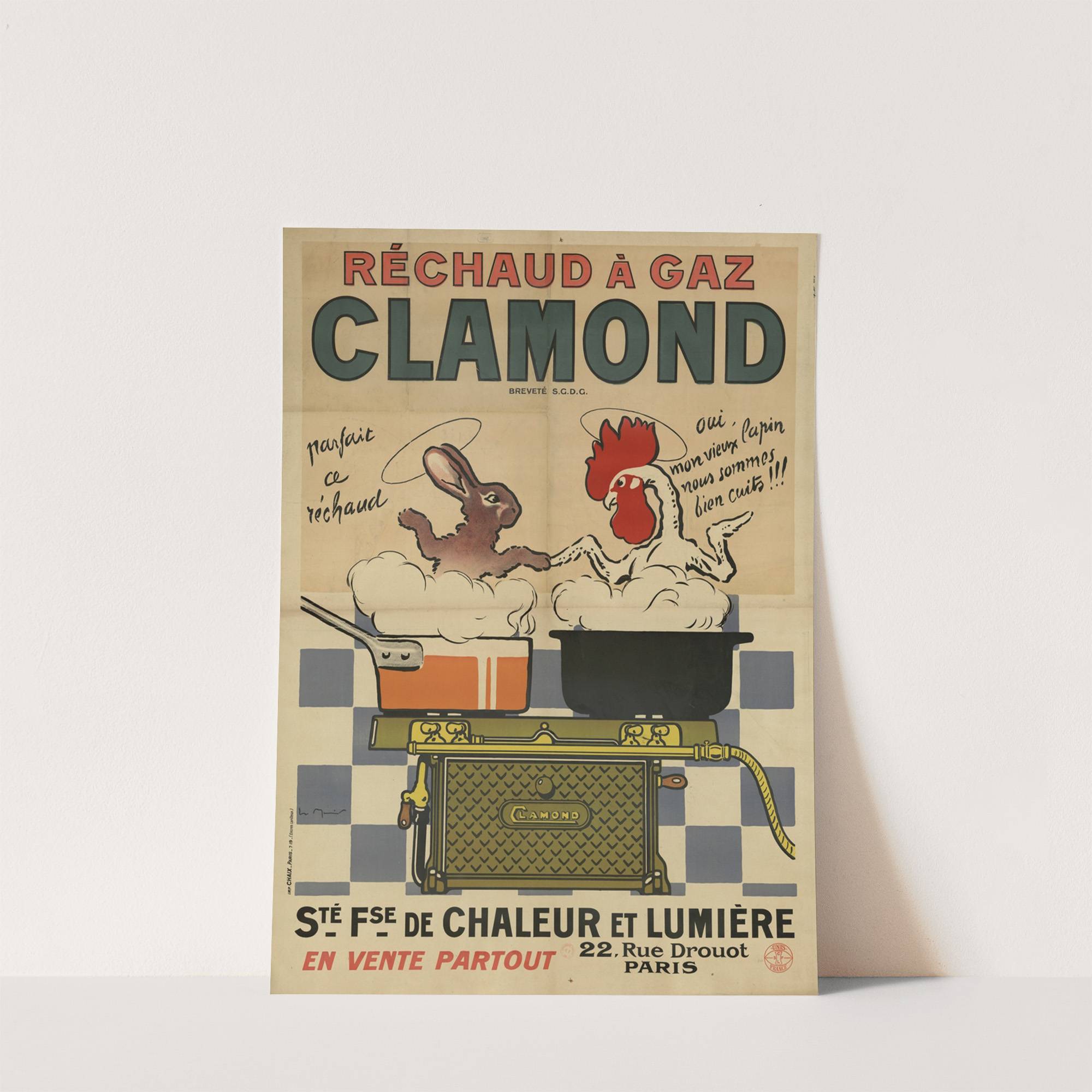 Réchaud à gaz Clamond. Société française de chaleur et lumière, 22, rue Drouot, Paris. lapin, coq (1900-1920) by Georges Meunier - Wall Art Print