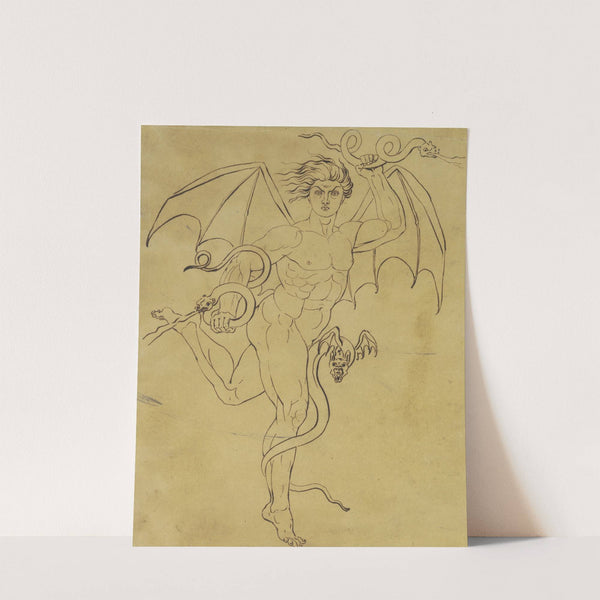 Geflügelter Jüngling in Begleitung einer Fledermaus, Schlangen in den Händen haltend (Genius des Bösen) by Gerhard von Kügelgen - Wall Art Print